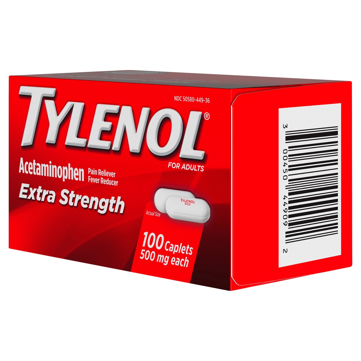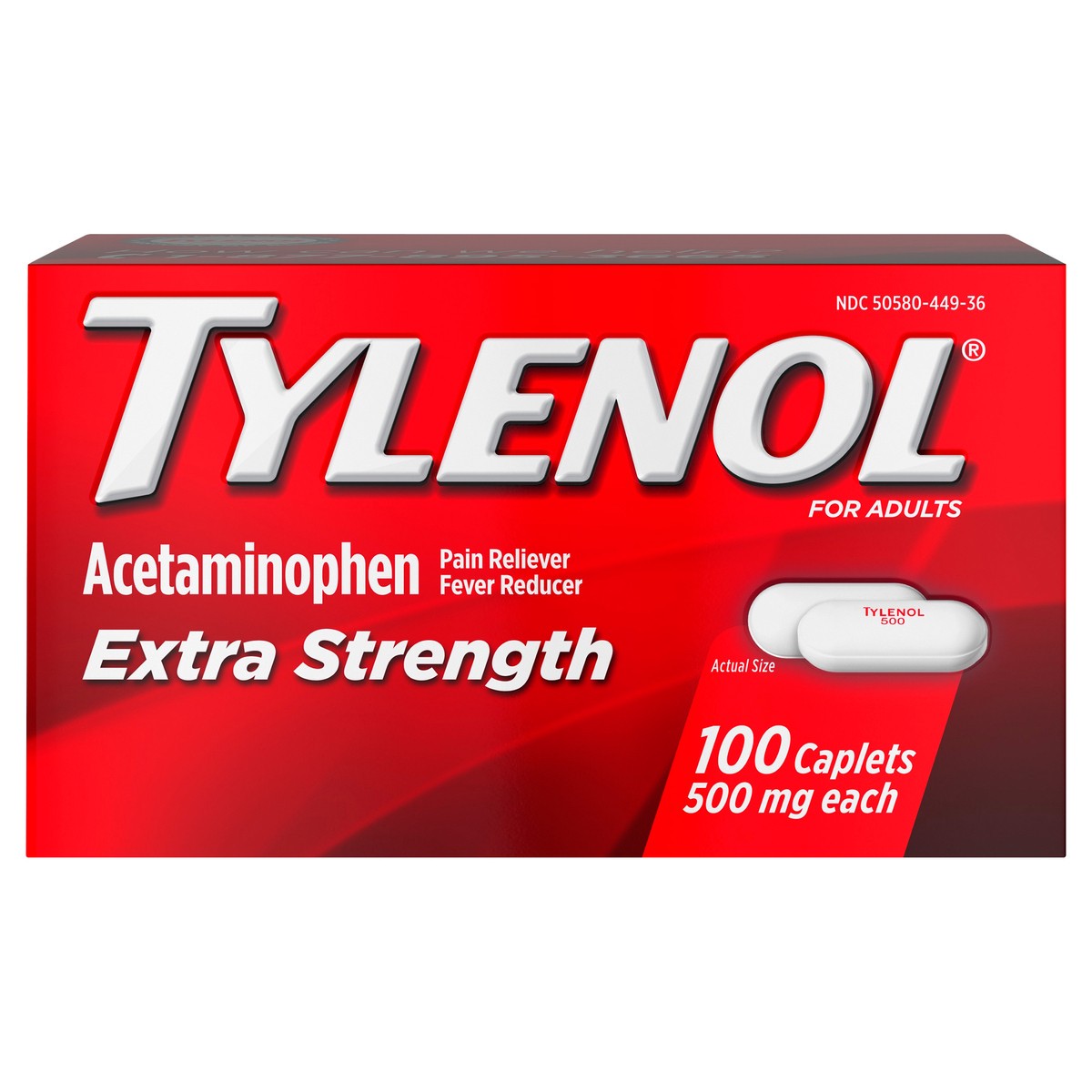 Tylenol Extra Strength 500mg Acetaminophen Caplets, 100 Ct
