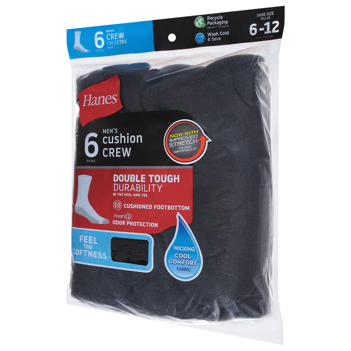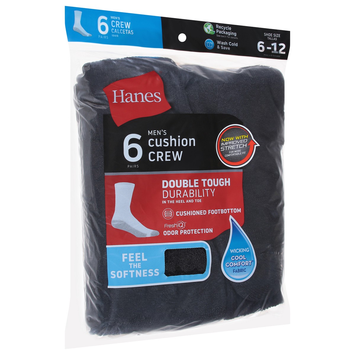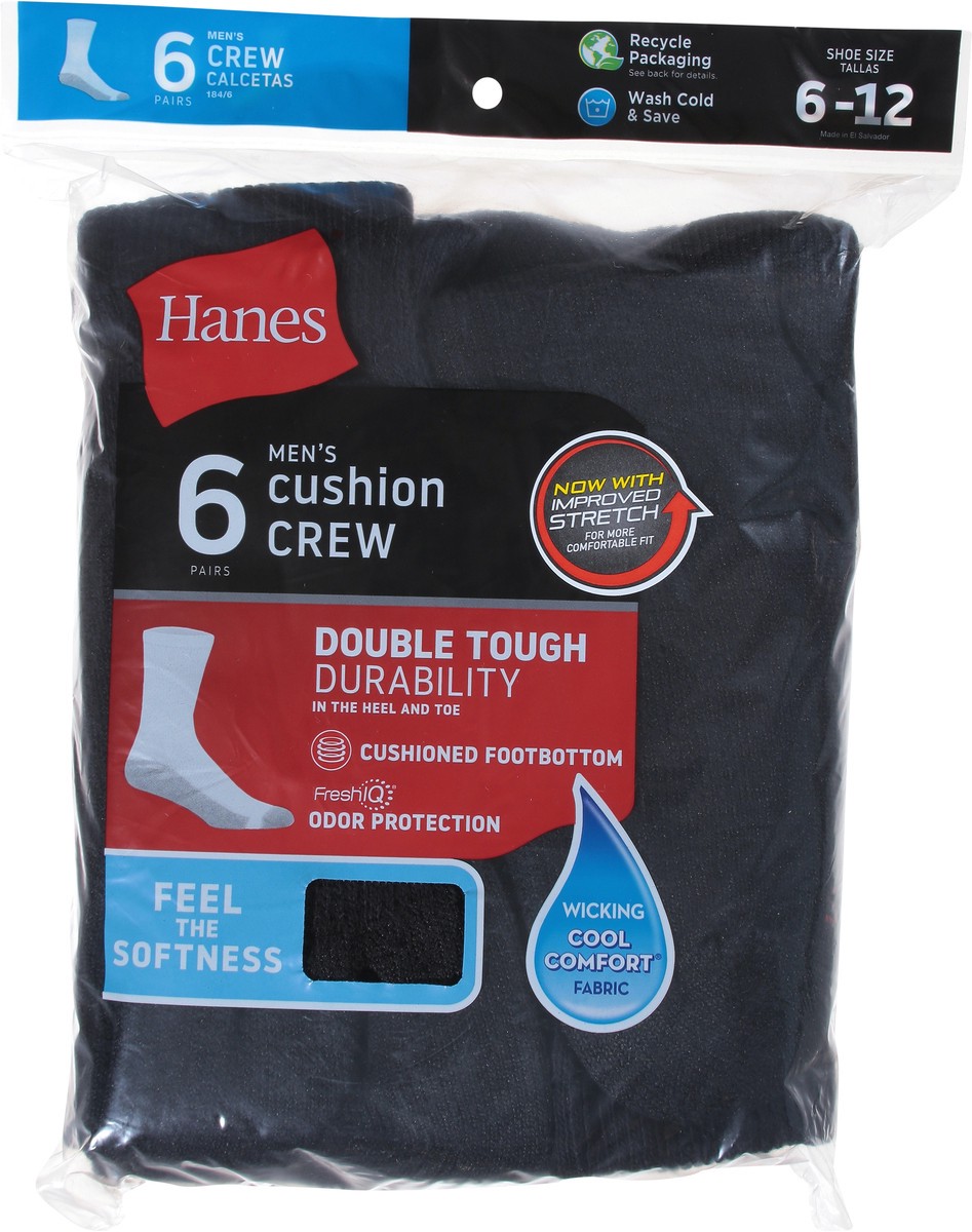 slide 1 of 10, Hanes Mens Socks Cushion Crew Black Size 10 To 13 - 6 Count, 1 ct