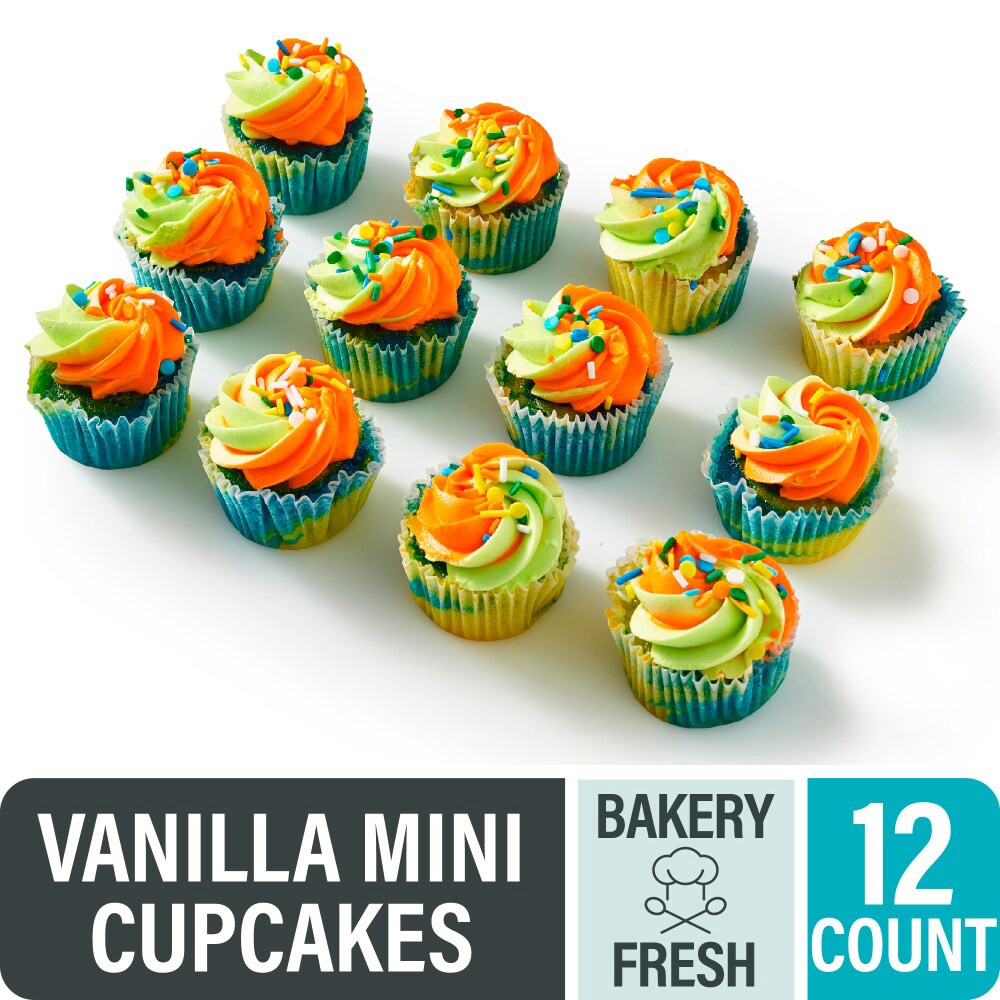 Bakery Fresh Multicolored Vanilla Mini Cupcakes are made for fun! Topped with multicolored buttercreme icing and sprinkles, these vanilla cupcakes are packed with flavor. Enjoy them anytime – at home …