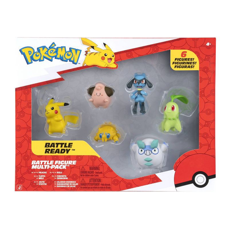 Train a new team of Pokémon with this Battle Figure Multipack. Set includesPikachu, Riolu, Cleffa, Joltik, Chikorita, Galarian Darumaka. Each 2-inch figure is compatible with Pokémon Clip 'N' Go, Carr…