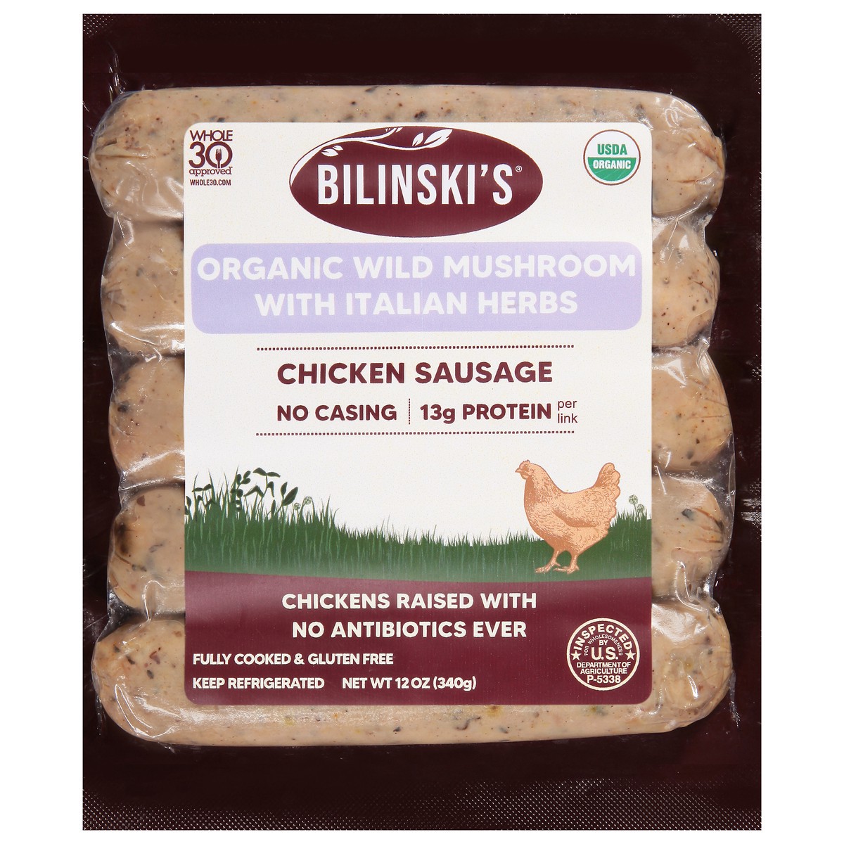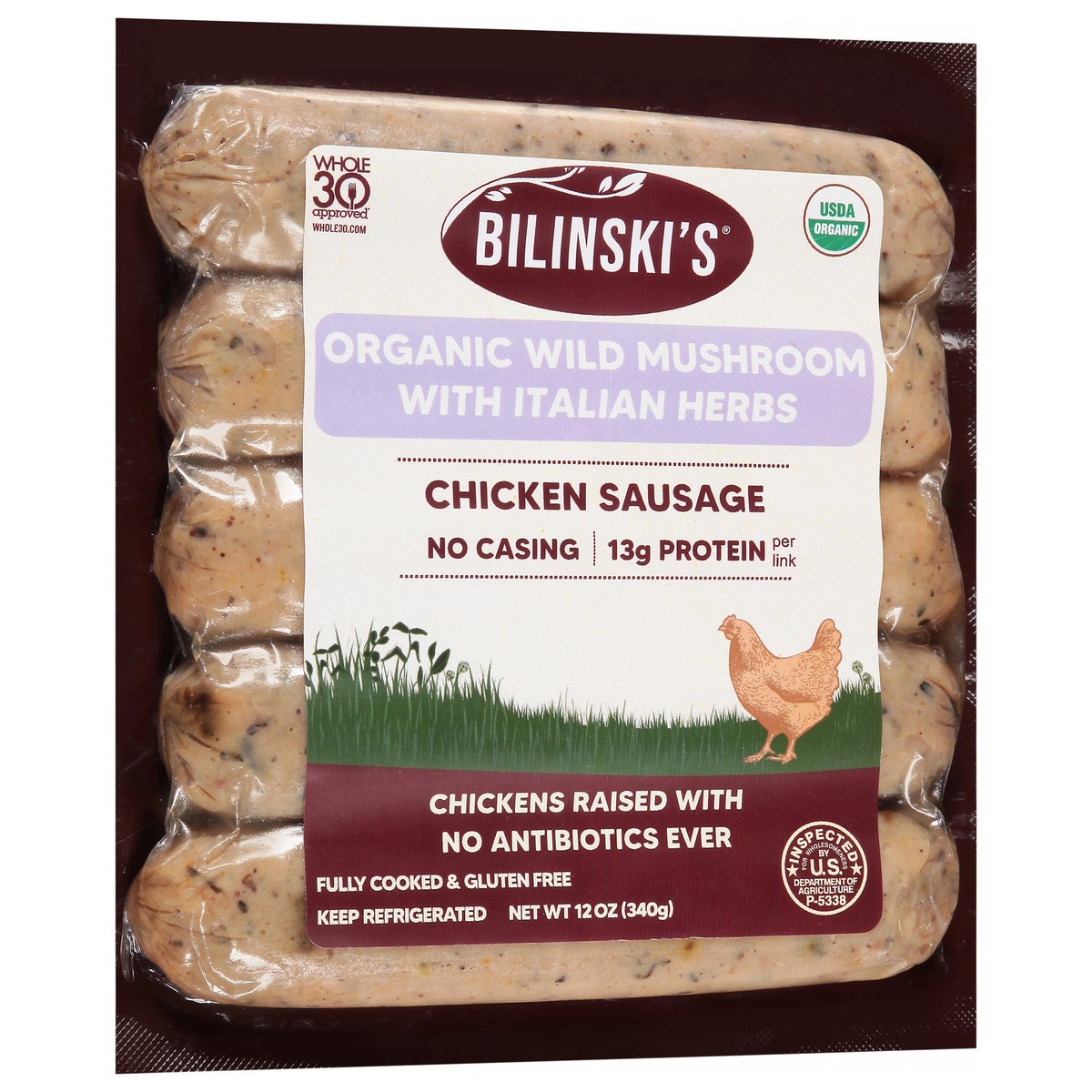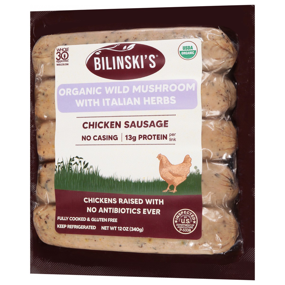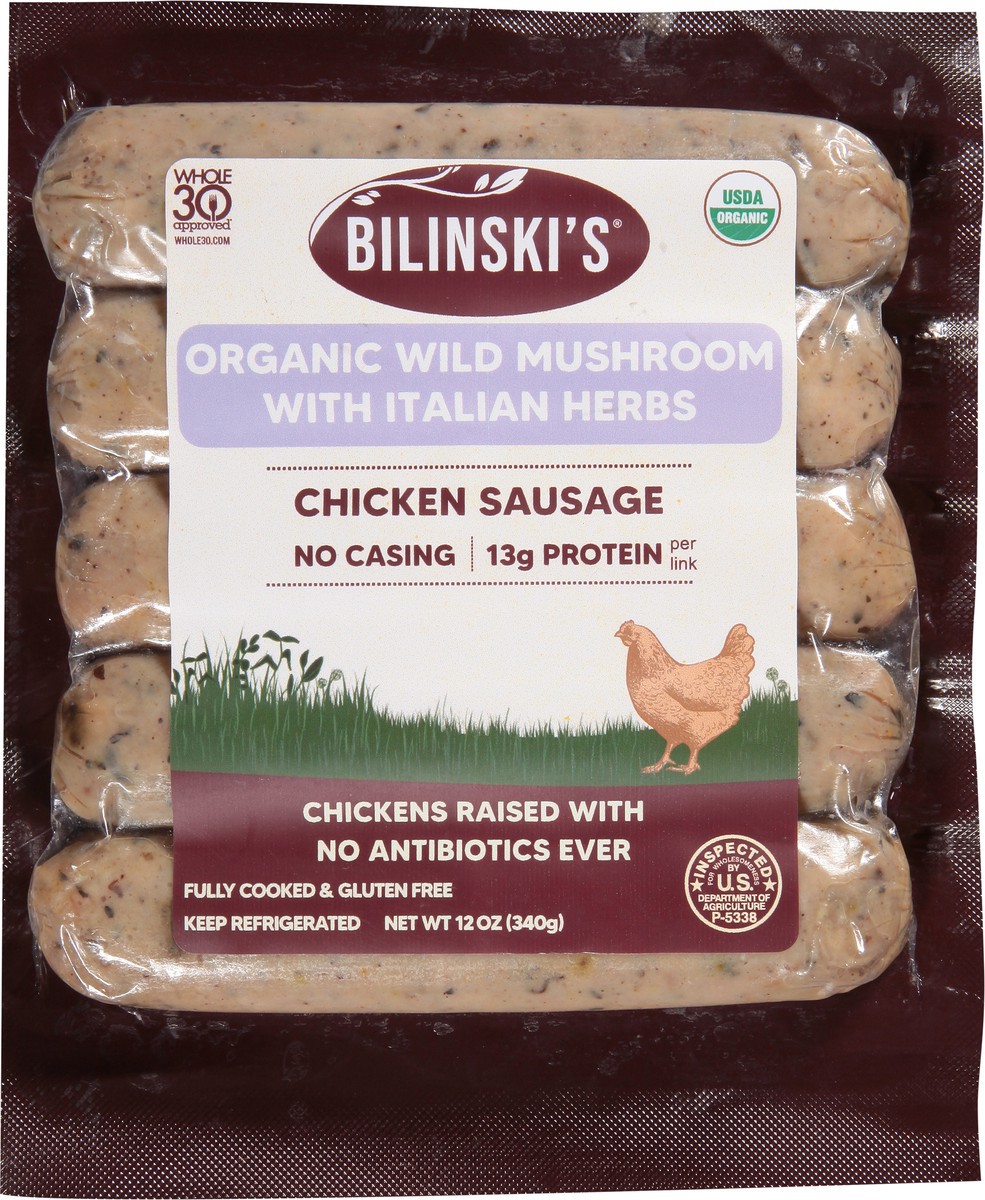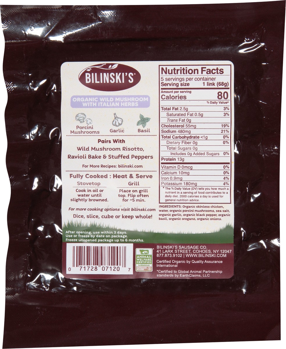 Bilinski's Organic Wild Mushroom With Italian Herbs Chicken Sausage 12 Oz - 12 Oz