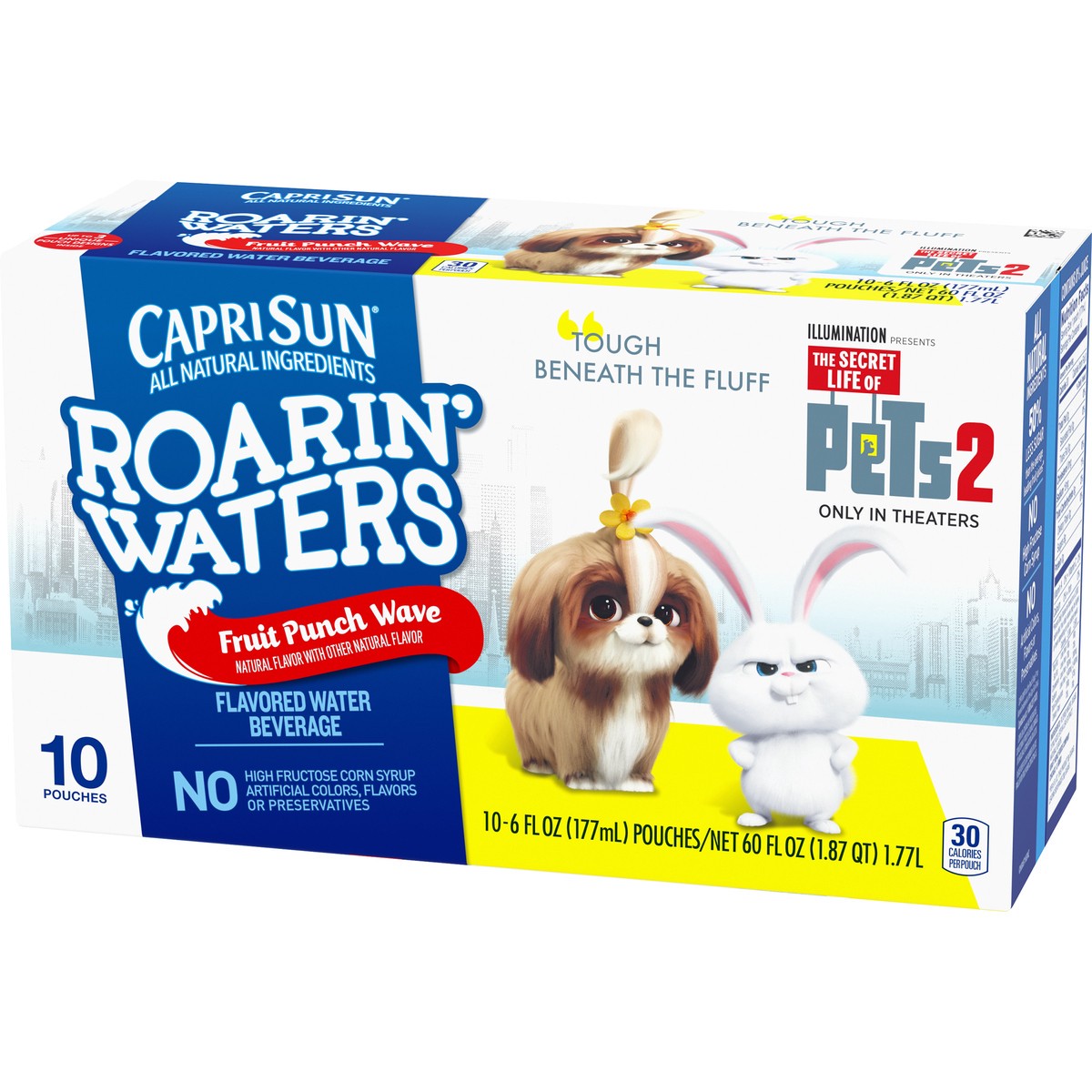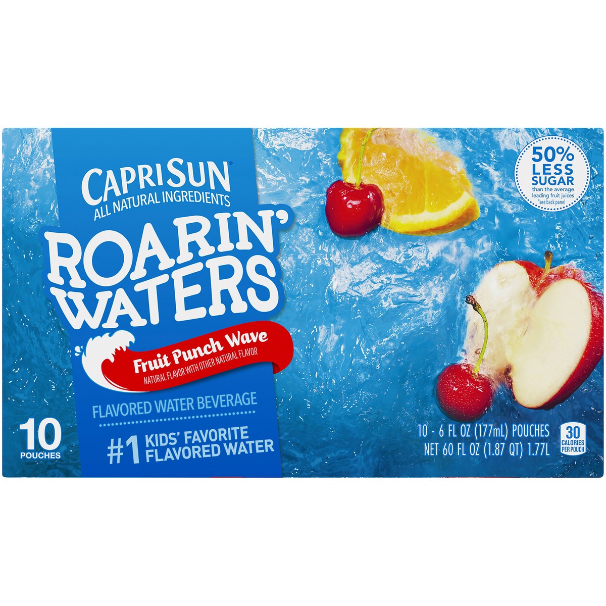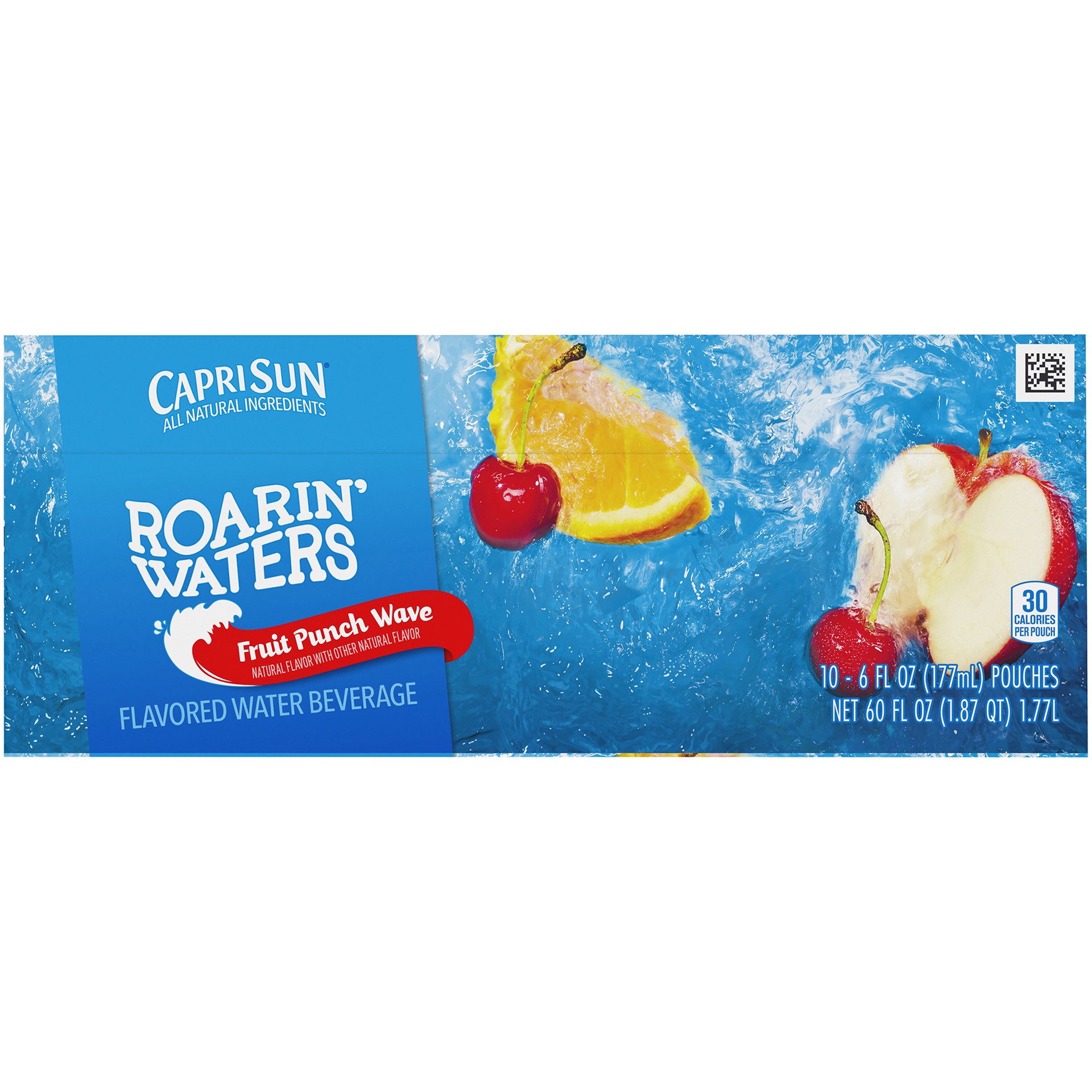 Splash into hydration! Capri Sun Roarin'' Waters Fruit Punch Flavored Water Beverage makes it easy to help kids stay hydrated. Our formula is sweetened with stevia and sugar. Fruit Punch features the …