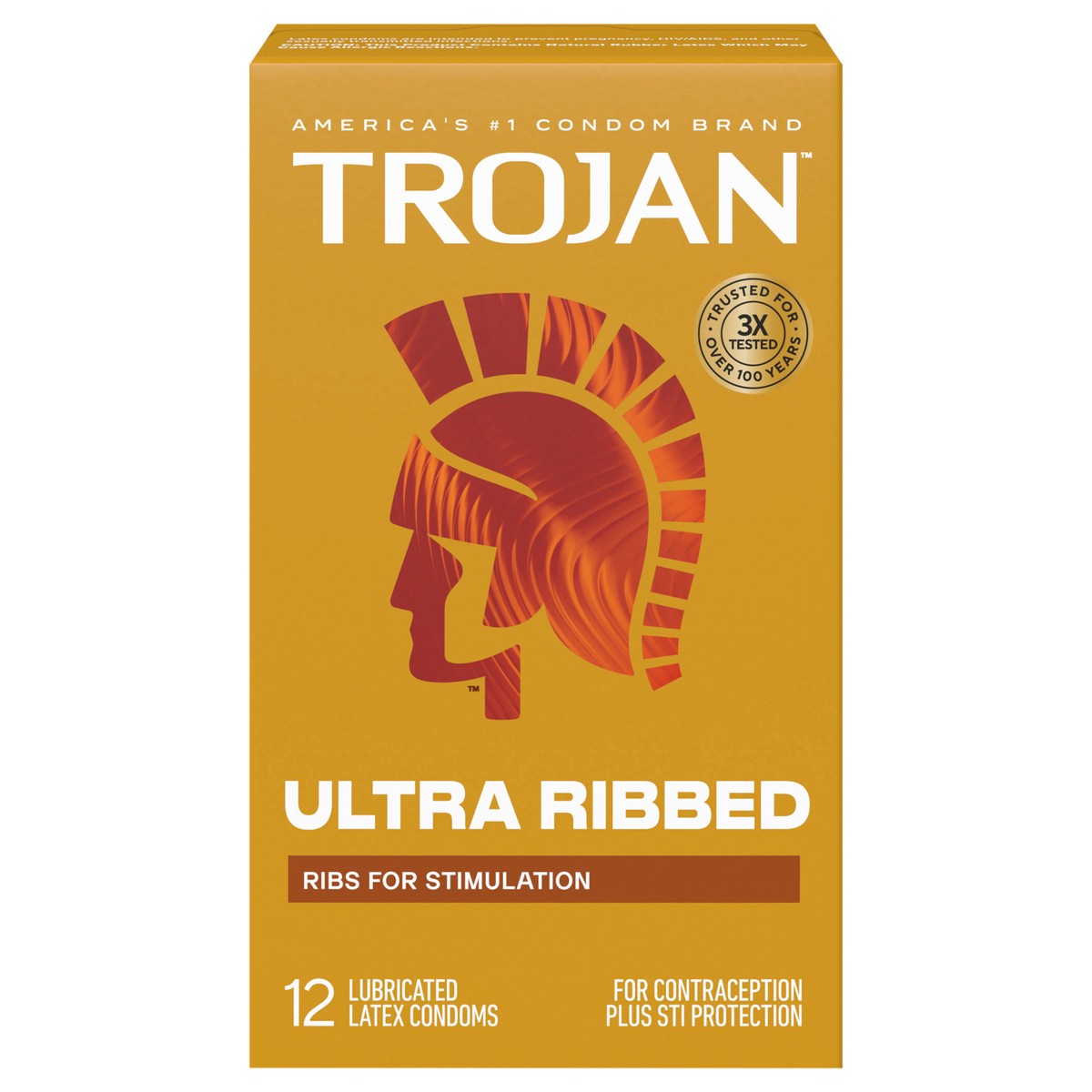 TROJAN Ultra Ribbed Lubricated Condoms, 12 Count are designed with deep ribs to increase stimulation. These condoms have deep ribbing at the base and the end for an enhanced effect on both partners, w…