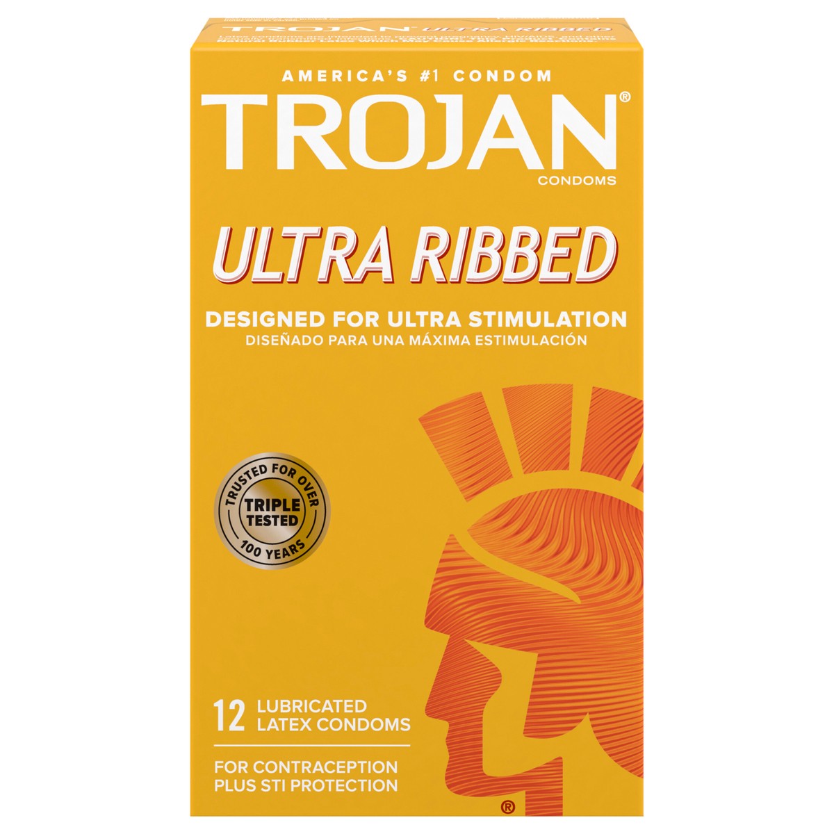 Trojan Ultra Ribbed Lubricated Condoms, 12 Count