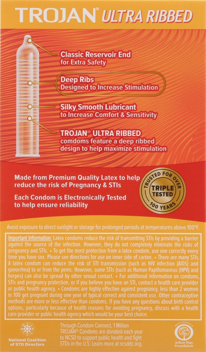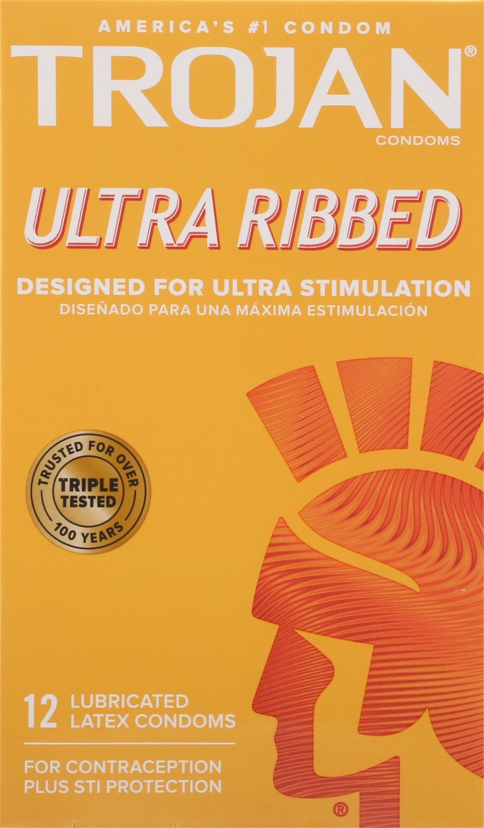 TROJAN Ultra Ribbed Lubricated Condoms, 12 Count are designed with deep ribs to increase stimulation. These condoms have deep ribbing at the base and the end for an enhanced effect on both partners, w…