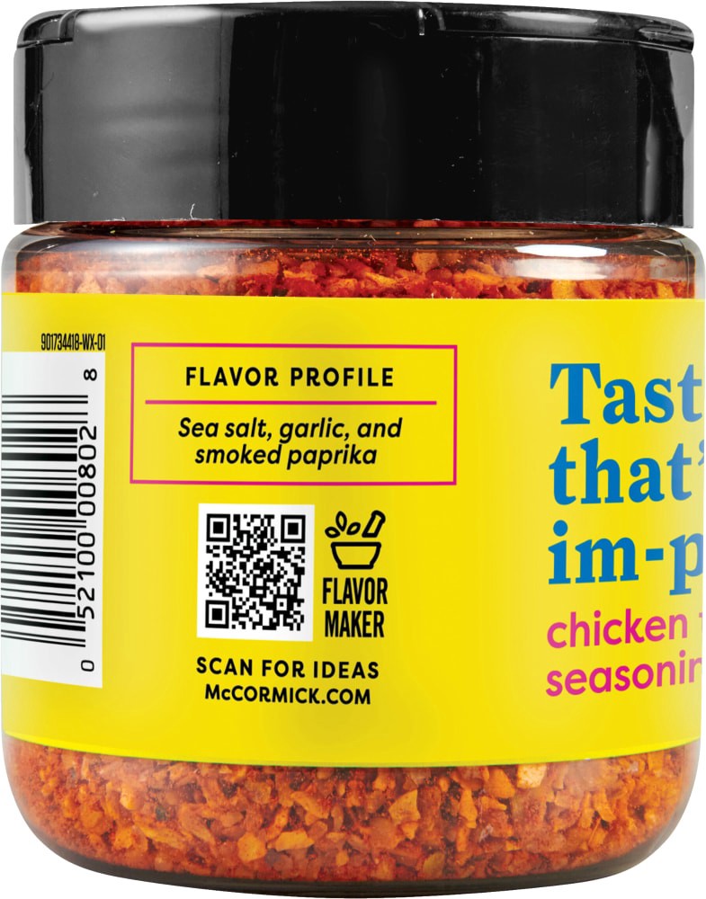 For taste that's im-peck-able, reach for McCormick Flavor Maker Chicken Topping Seasoning. A vibrant blend of sea salt, garlic, and smoked paprika it's an Flavor made easy for chicken, pasta, or steak…