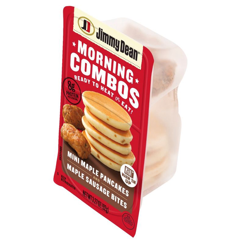 Start the day with a fresh-made breakfast featuring Jimmy Dean® Morning Combos. This delicious combination of maple mini pancakes and fully cooked maple sausage bites delivers 8 grams of protein per s…