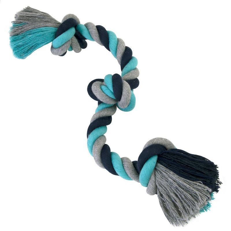 Keep your cute canine on their toes with this vibrant and colorful Dog Rope Toy from Boots & Barkley™. This small dog rope toy is made from a durable fabric in gray, black and blue hues, with tassels …