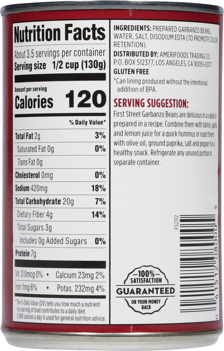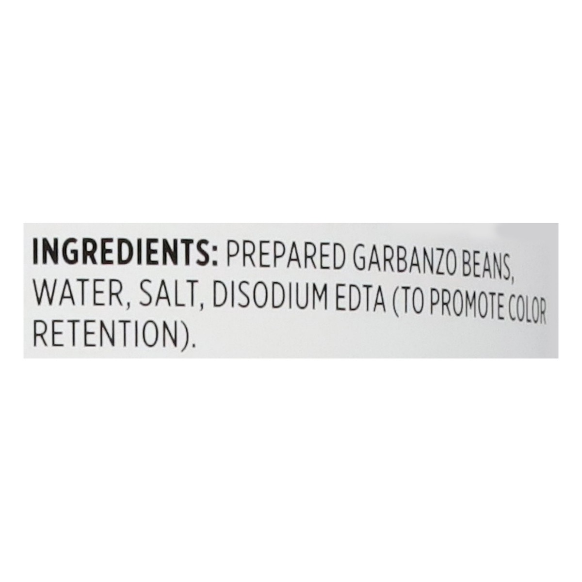 Prepared Garbanzo Beans, Water, Salt, Disodium EDTA to Promote Color Retention.