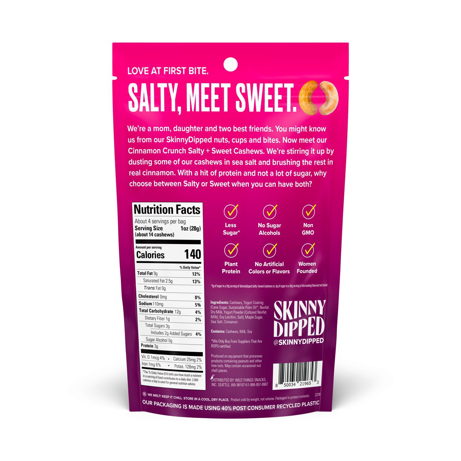 Skinny Dipped Salty & Sweet Cashews, Cinnamon Crunch