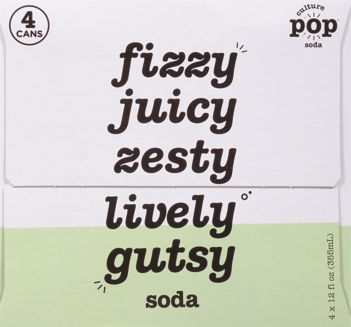 Fizzy & gutsy. Plant-based. Soda you can feel good about! Fizzy, juicy, zesty, lively, gusty soda.