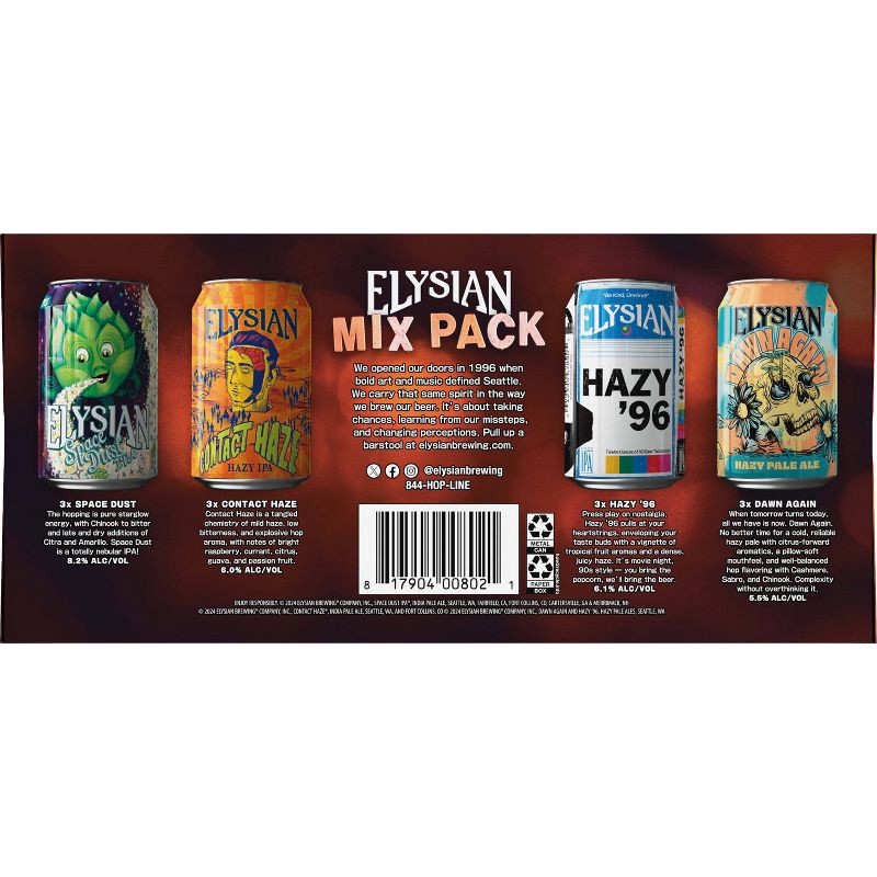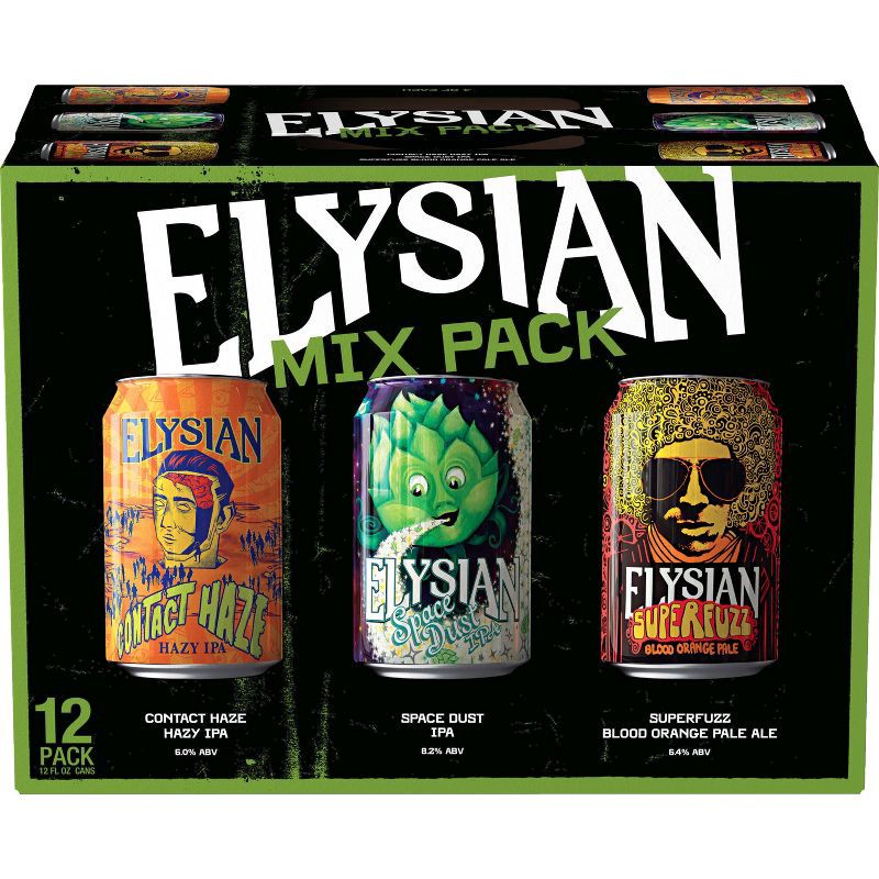 - Elysian Mix Pack is a party pack. Choose your own adventure when pairing Space Dust IPA, Contact Haze Hazy IPA, or Hazy 96. There's no wrong turns, only possibilities.