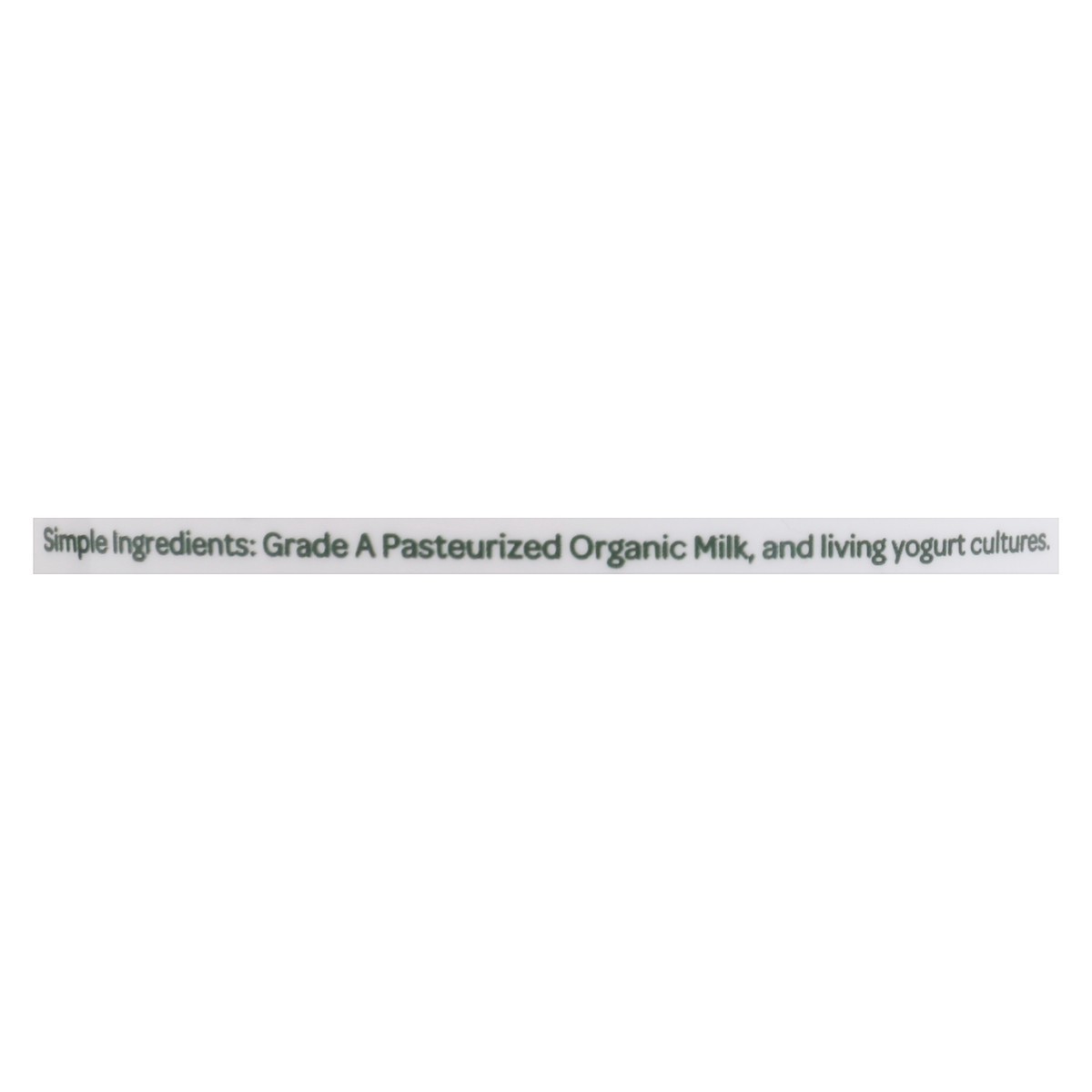 Simple Ingredients: Grade A Pasteurized Organic Milk, and Living Yogurt Cultures.