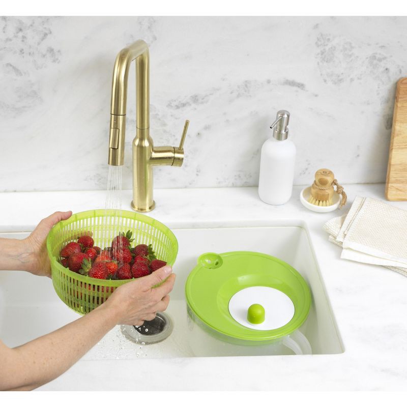 GoodCook Ready 6qt Salad Spinner: Dishwasher-Safe, Plastic, 3-Piece, Green, 10"x10"x7"