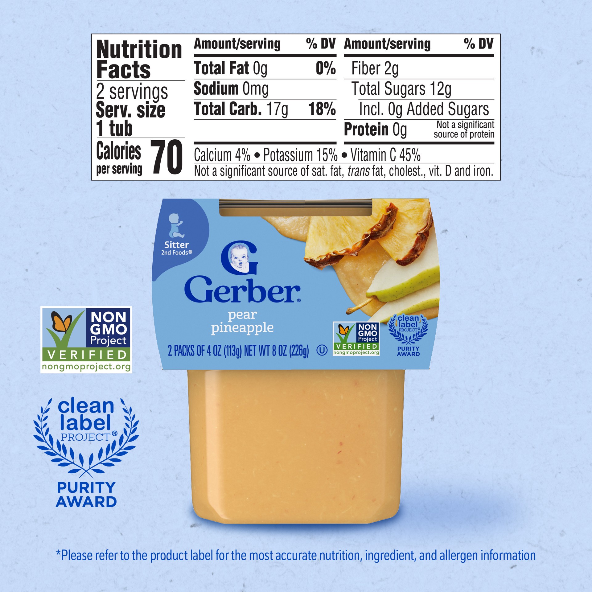 Gerber Stage 2 Baby Food, Pear Pineapple Puree Tubs are a premium choice for your child''s early stages. Crafted to help support their nutritional needs, along with meeting the busy lifestyle needs of…