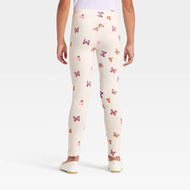Girls' Butterfly Printed Leggings - Cat & Jack™ Light Beige M