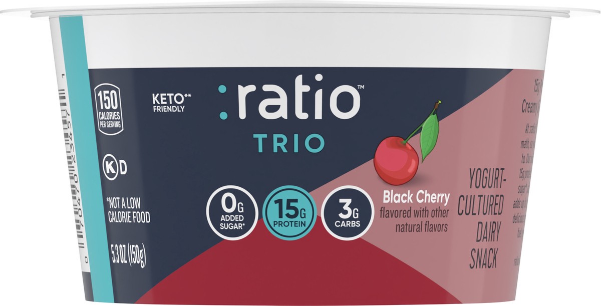 :ratio Trio Yogurt Cultured Dairy Snack, Black Cherry, 0g Added Sugar, Keto Yogurt Alternative, 5.3 oz