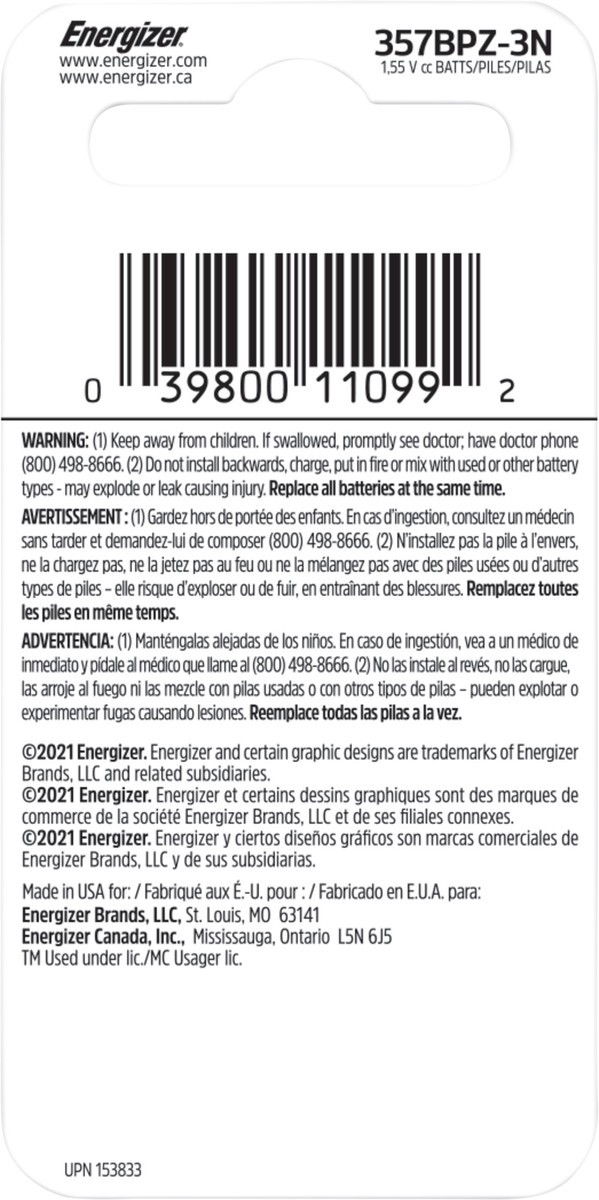 Energizer 357 1.5 Volt Silver Oxide Button Cell Batteries - 3 Count