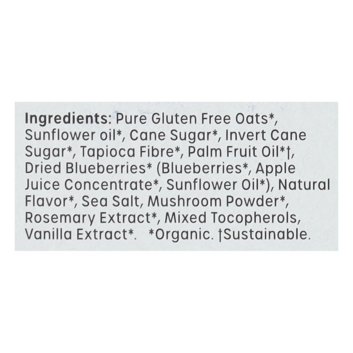 Pure Gluten Free Oats*, Sunflower Oil*, Cane Sugar*, Invert Cane Sugar*, Tapioca Fibre*, Palm Fruit Oil*(a), Dried Blueberries* (Blueberries*, Apple Juice Concentrate*, Sunflower Oil*), Natural Flavor…