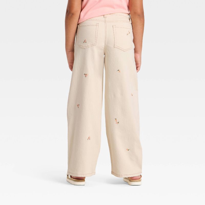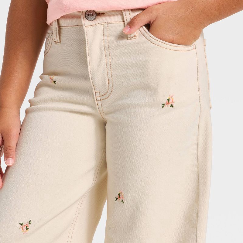 Girls' Wide Leg Floral Jeans - Cat & Jack™ Cream 7