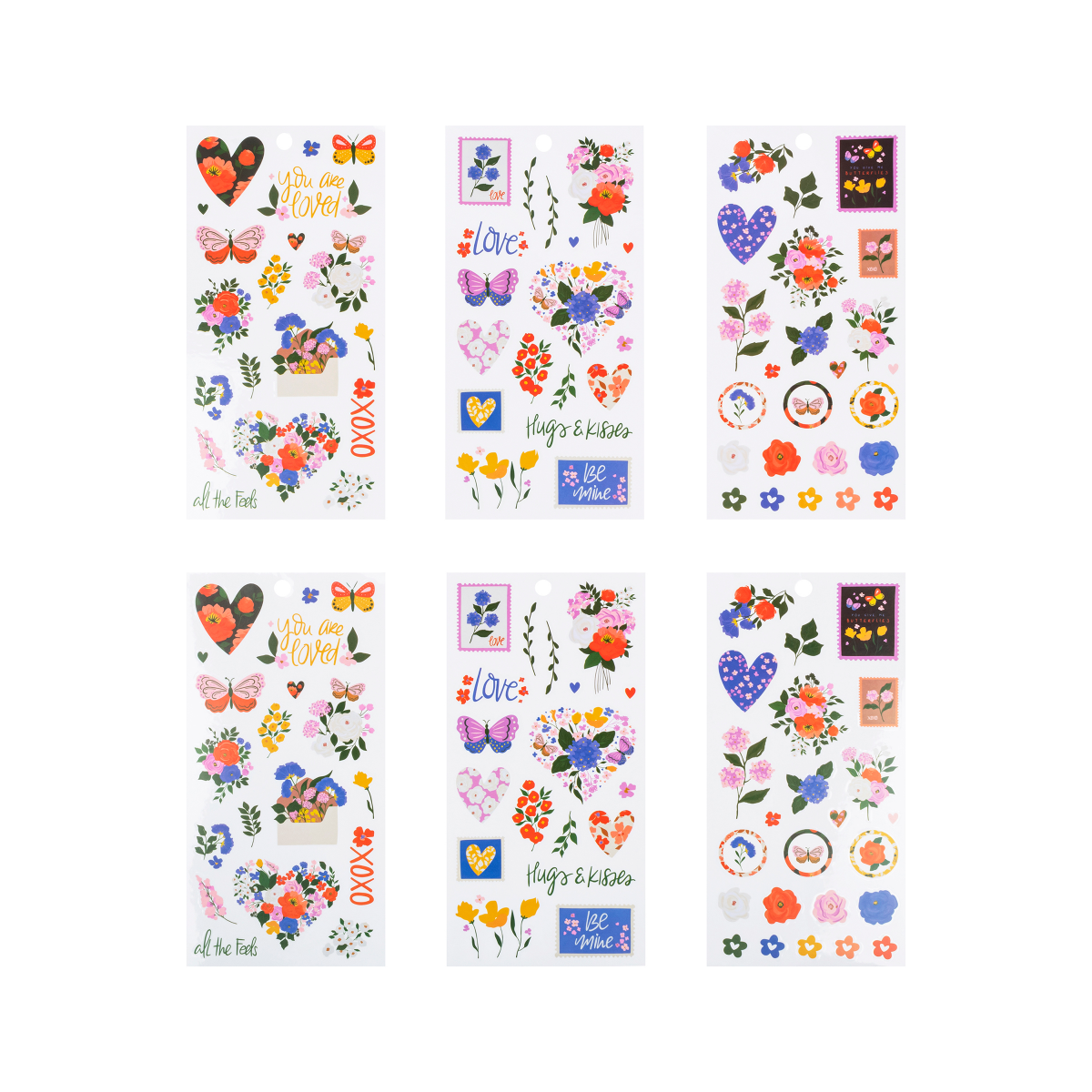 This pack of Brea Reese® stickers features six sheets of hearts and floral designs. It includes 2 sets of 3 designs6 sheets in total. These easy-application adhesive stickers will stick onto, and elev…