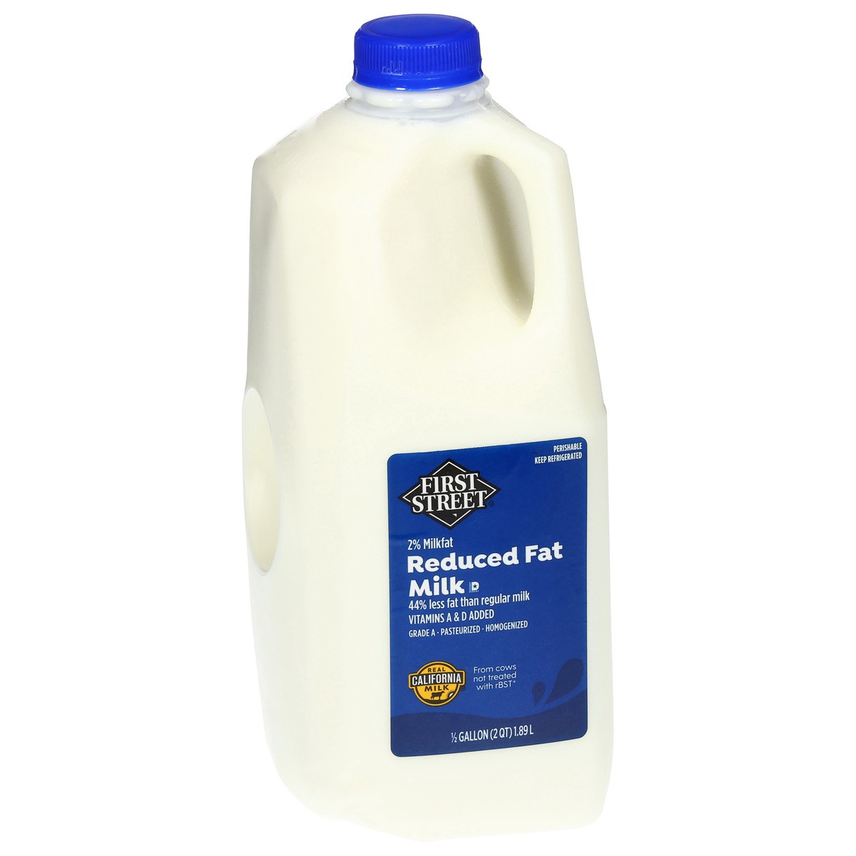 First Street 2% Reduced Fat Milk, Balanced dairy. First Street 2% Milk offers a creamy taste with less fat. Fortified with vitamins A and D, it's a staple for cereal, baking, and drinking.