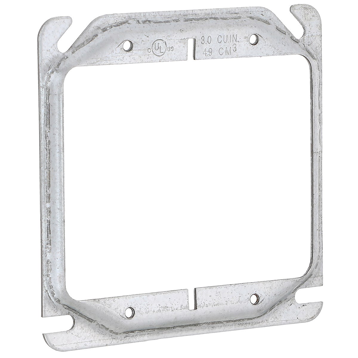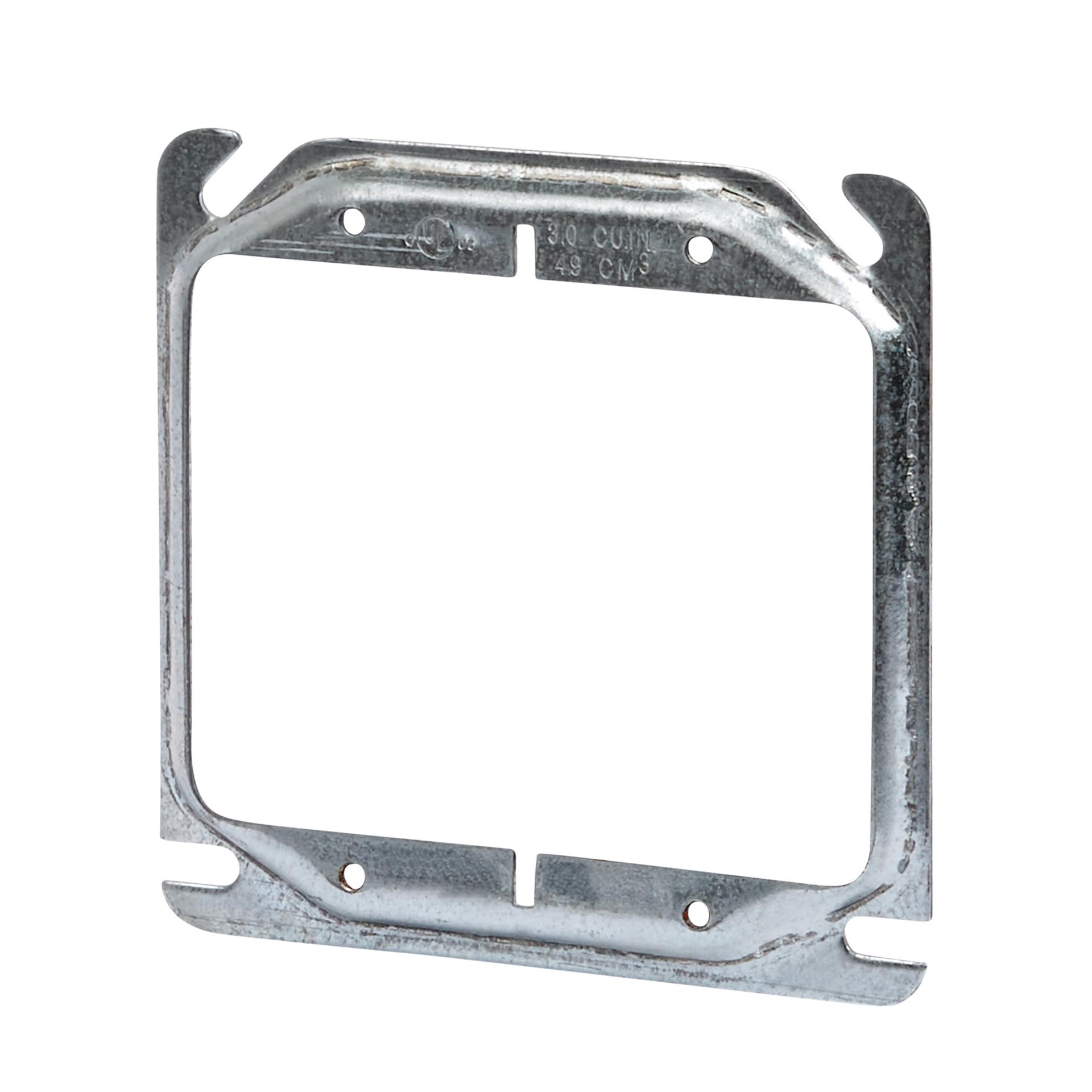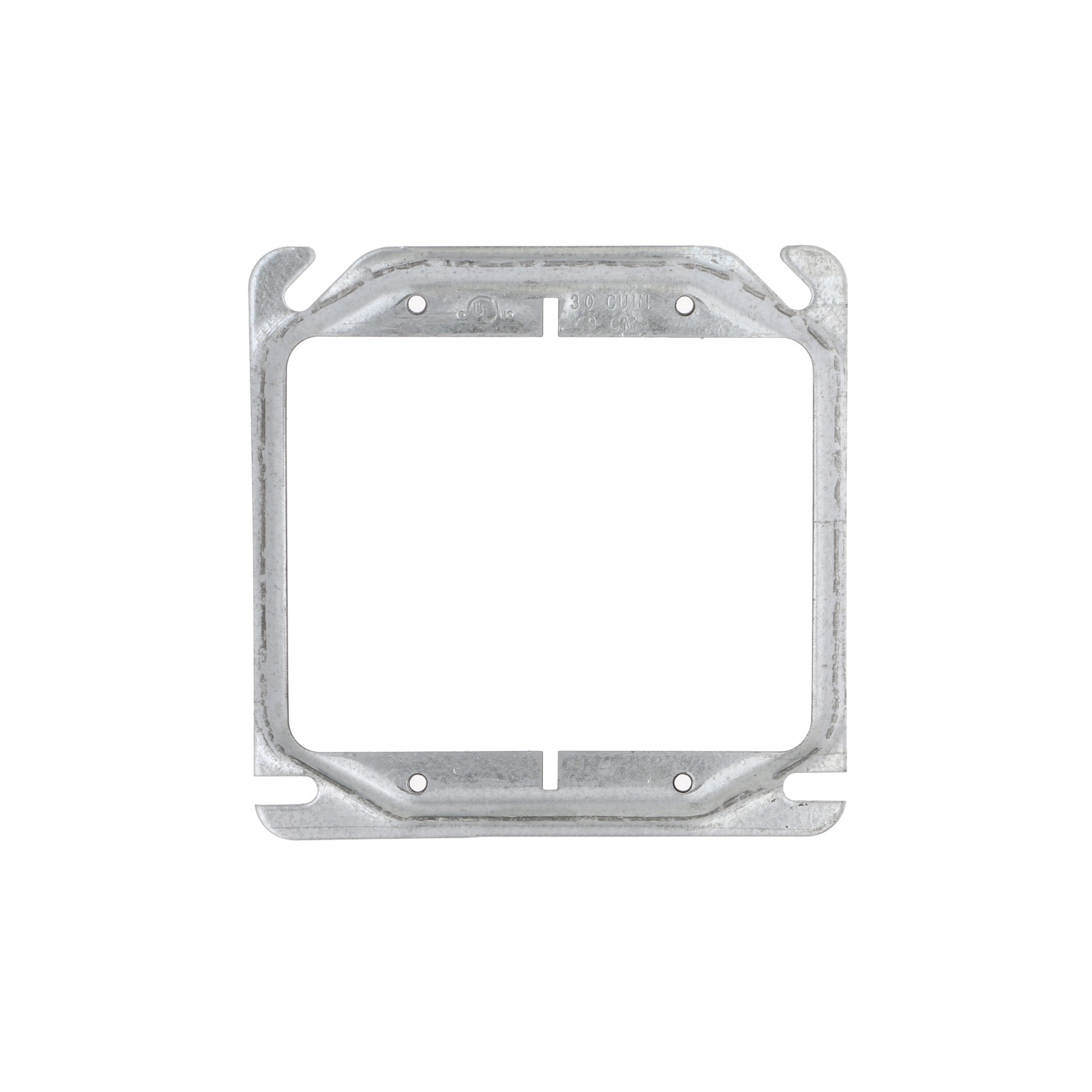 Steel construction. Raised 1/4 in. Mounts 2 devices. Angled mounting slots compensate up to 12° for box misalignment. cULus Listed.