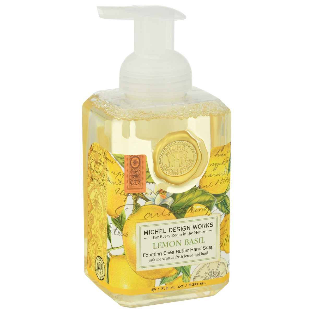 Foaming shea butter hand soap with the scent of fresh lemon and basil. Scent: Fresh lemon & basil. For every room in the house. Formulated with shea butter and aloe vera to gently cleanse and moisturi…