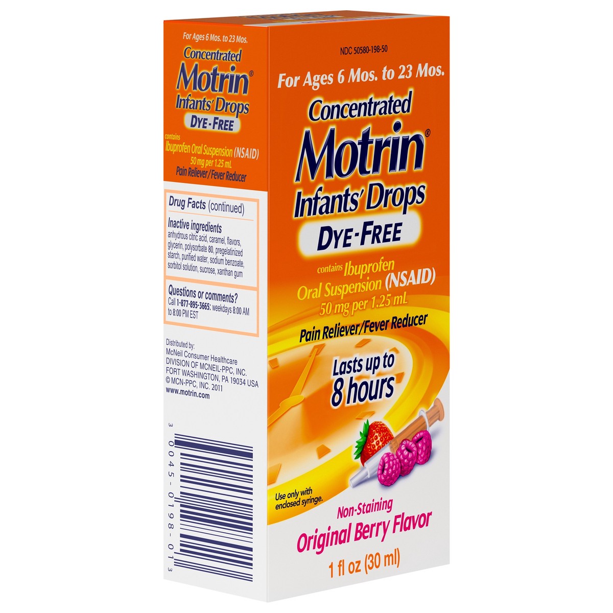 Motrin Infants Drops Concentrated Ibuprofen Suspension Original Berry Flavor Dye Free - 1 Fl. Oz.