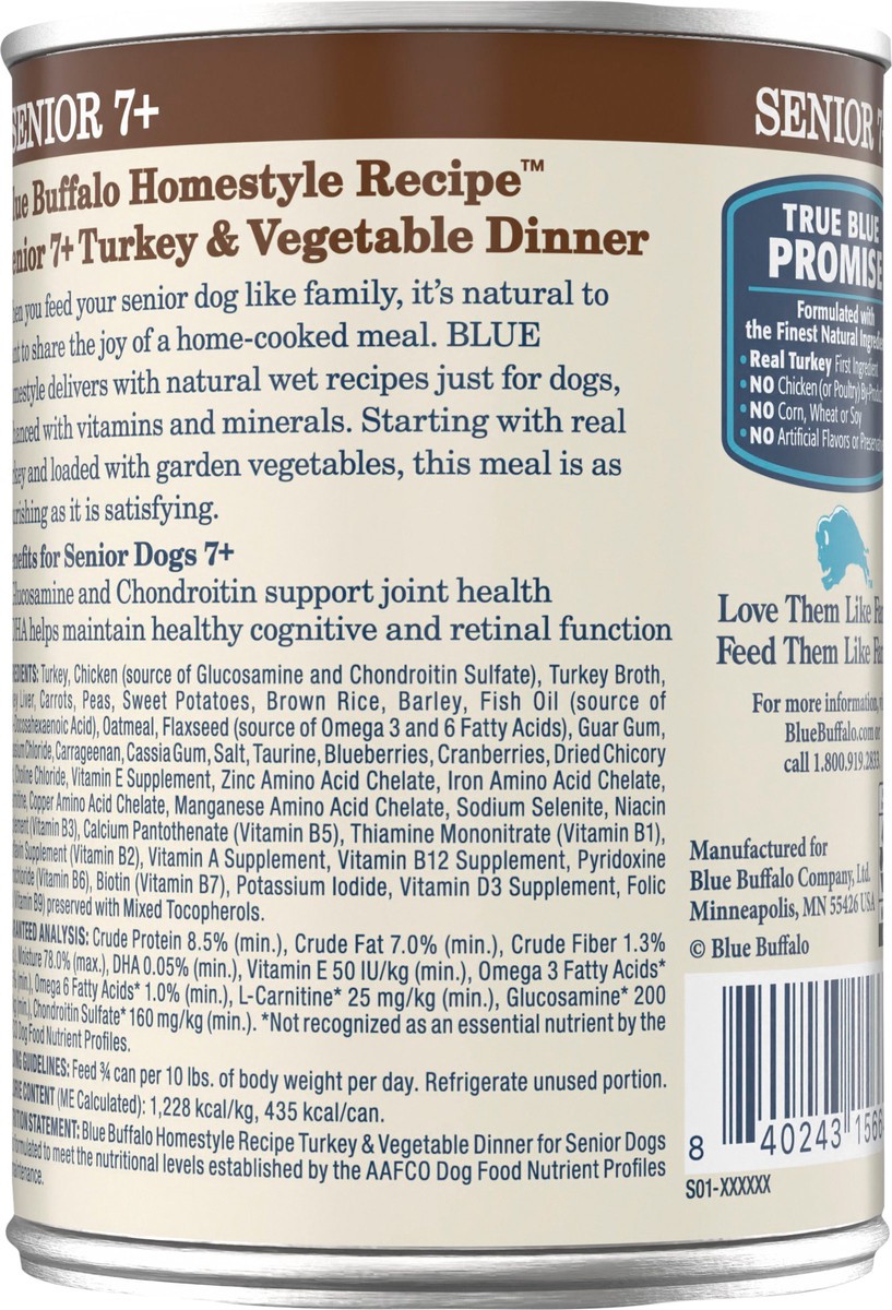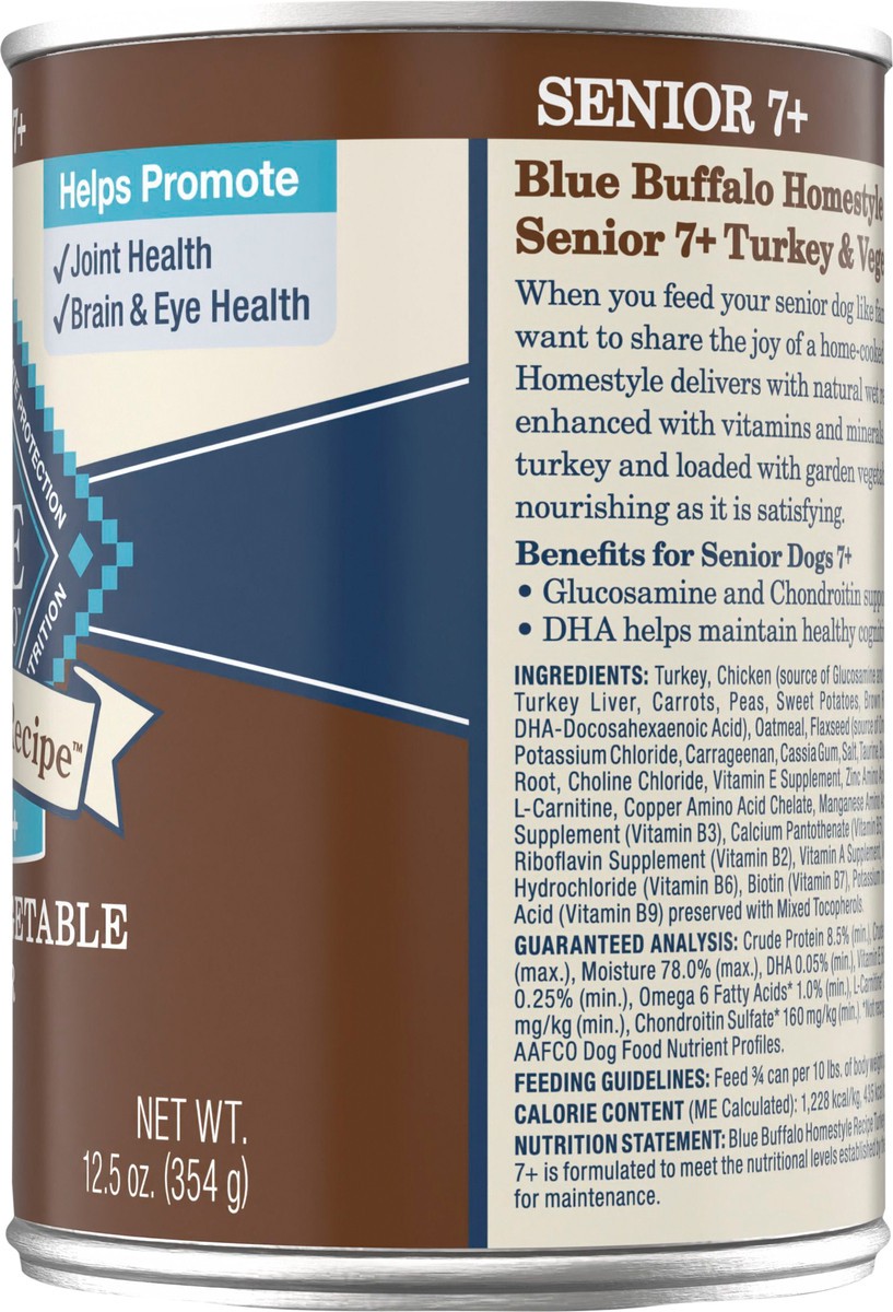 Blue Buffalo Homestyle Recipe Senior 7+ Turkey & Vegetable Dinner Wet Dog Food for Senior 7+ Dogs, Turkey Recipe, 12.5 oz Can