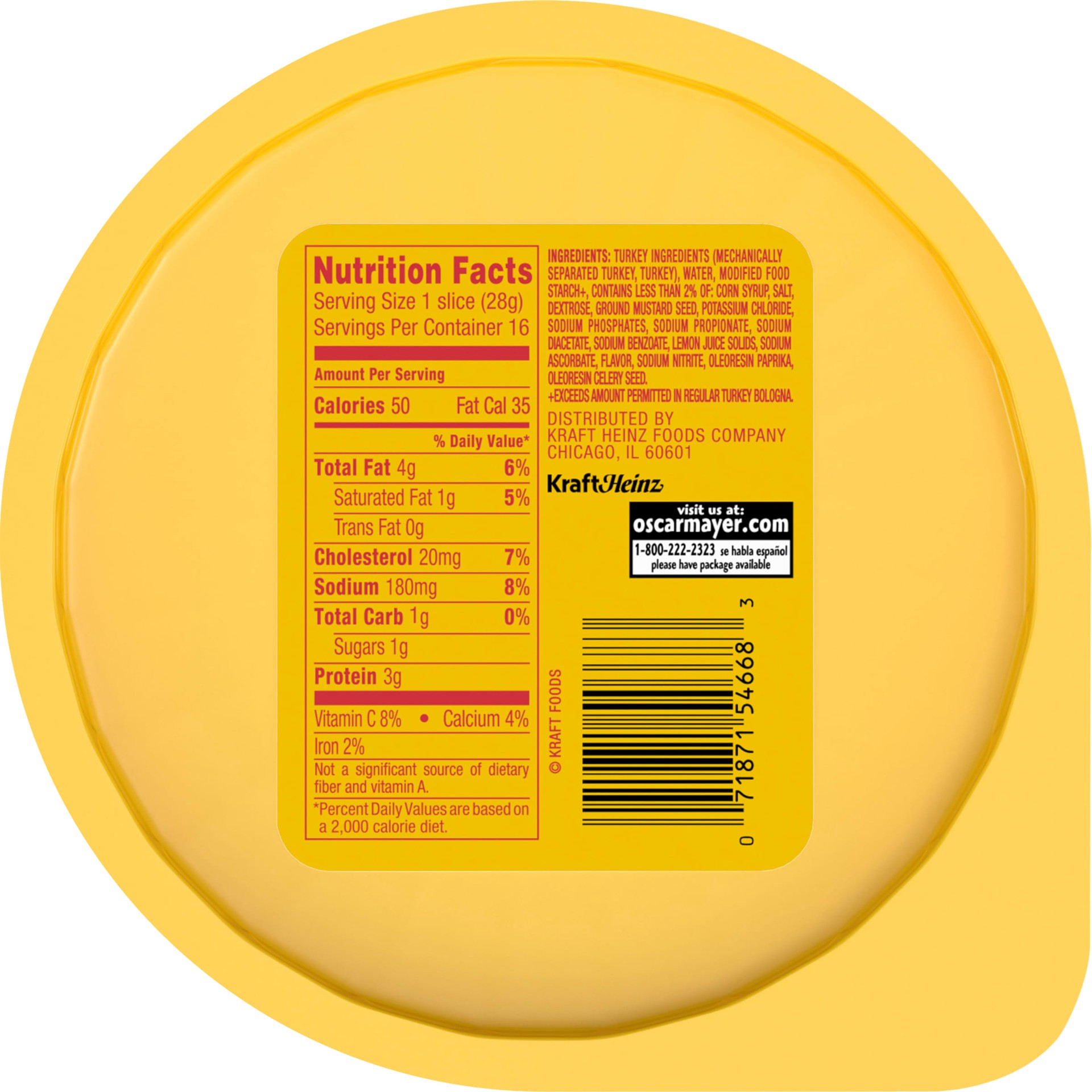 Oscar Mayer has a way with bologna. Our Oscar Mayer Turkey Bologna Sliced Lunch Meat with 50% Lower Fat than USDA data for bologna made with chicken and pork is made with turkey, so you can enjoy the …