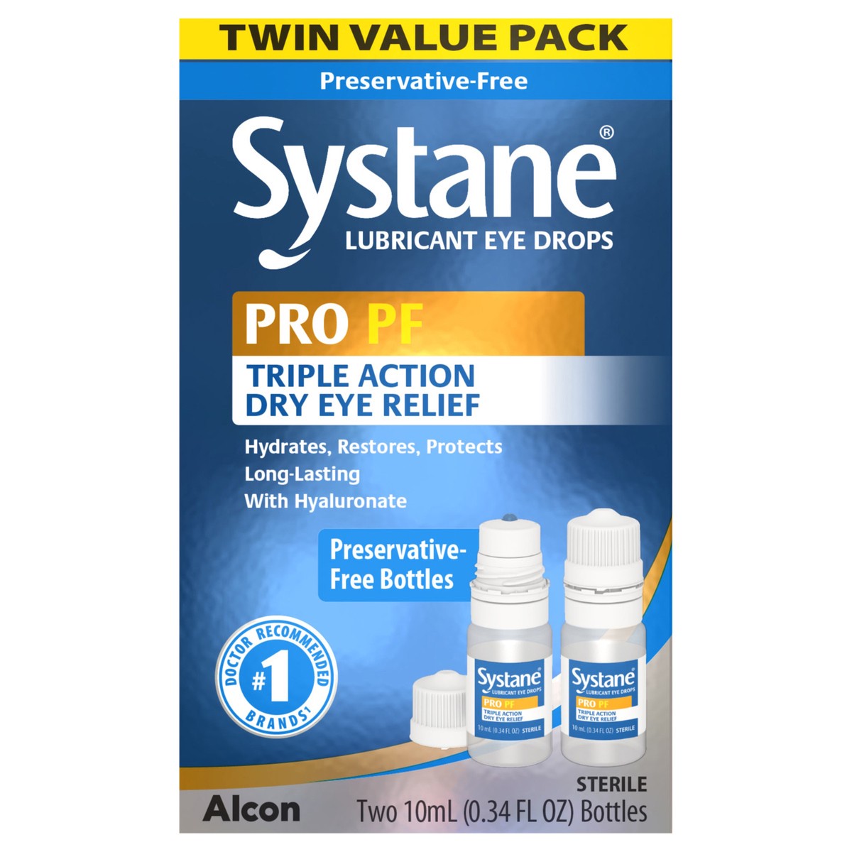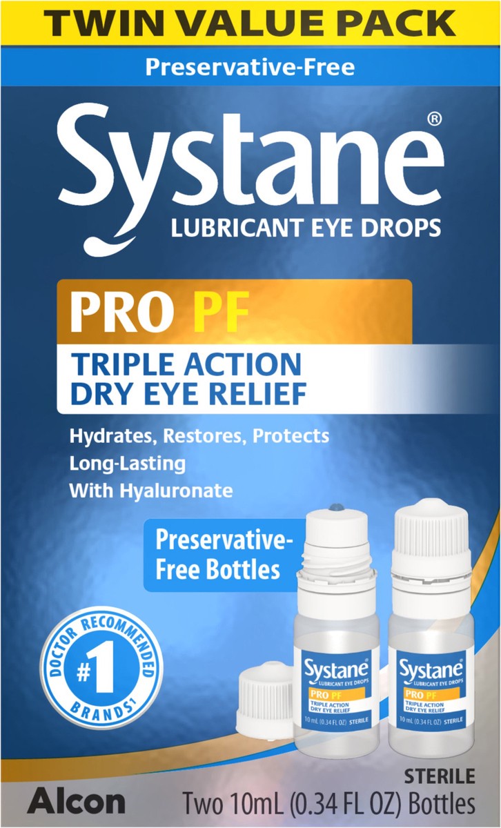 FSA/HSA EligibleSystane Pro Preservative Free Lubricating Eye Drops is a triple action formula that hydrates, restores and protects dry eyes for long-lasting dry eye relief. Triple-Action Dry Eye Reli…
