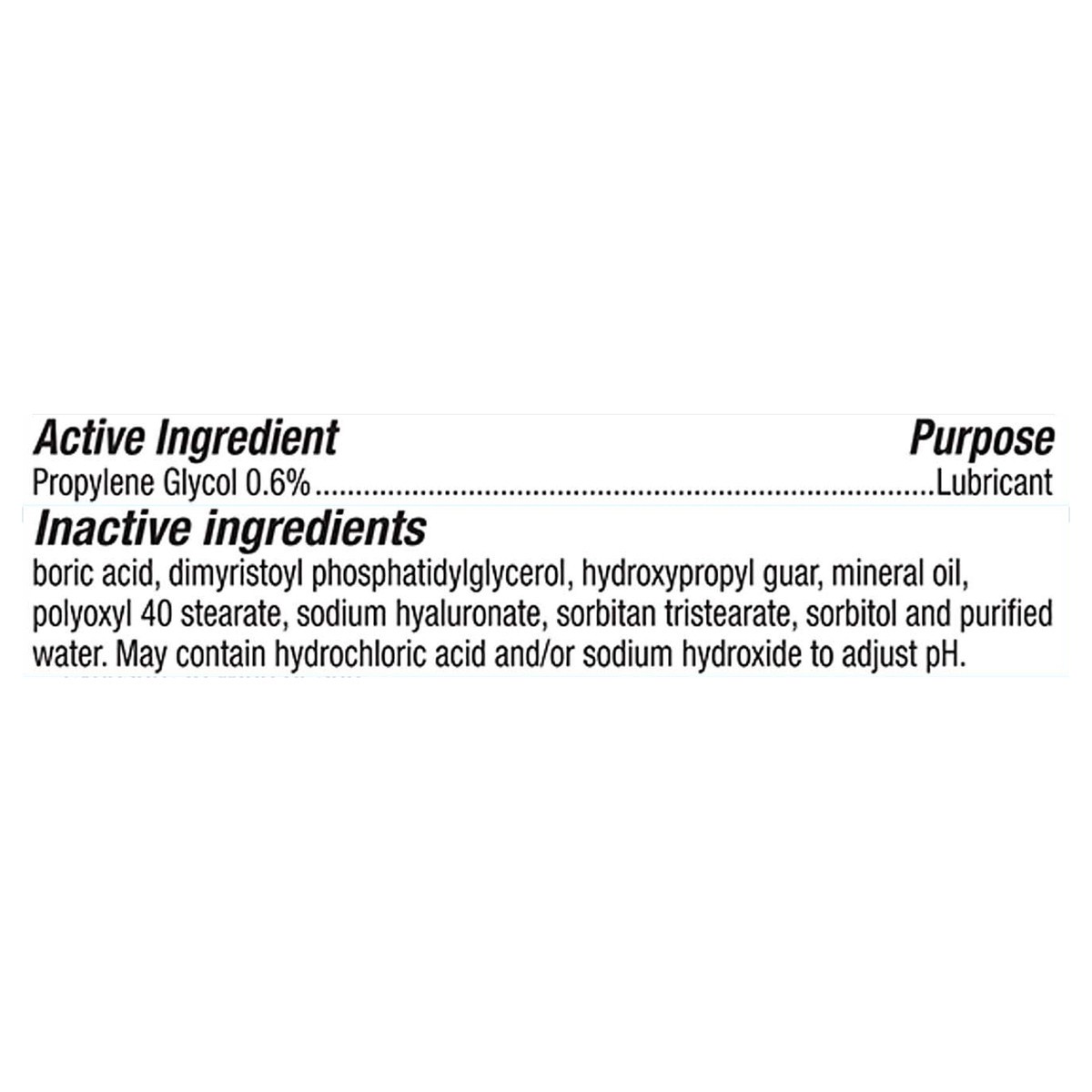 Active Ingredients: Propylene Glycol (0.6 %), Lubricant. Inactive Ingredients: Boric Acid, Dimyristoyl Phosphatidylglycerol, Hydroxypropyl Guar, Mineral Oil, Polyoxyl 40 Stearate , Sodium Hyaluronate,…