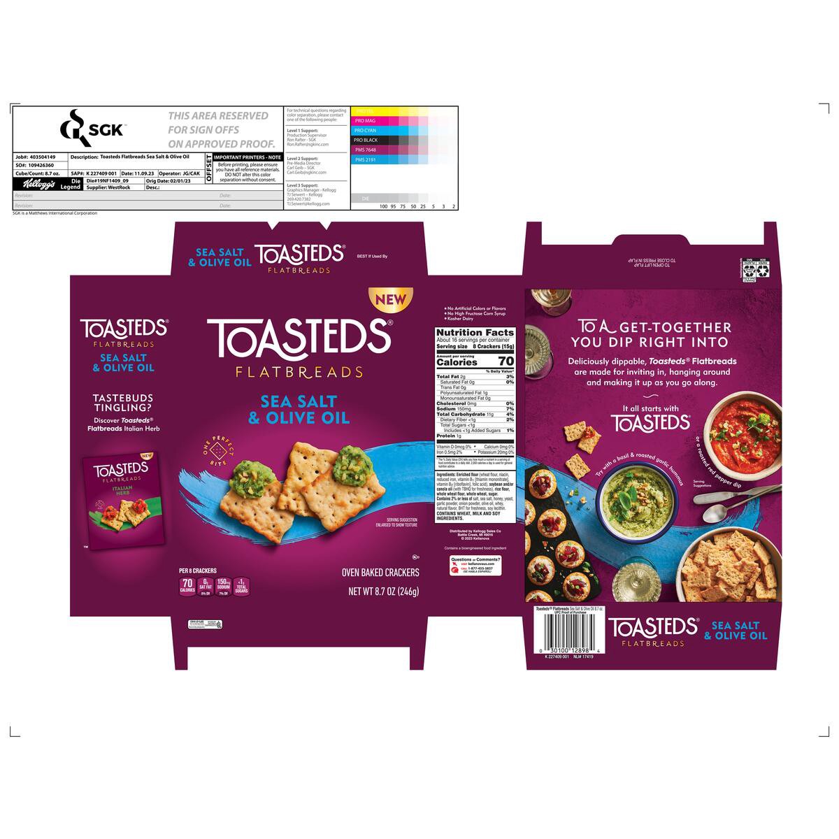 Elevate your gatherings with Toasteds Sea Salt and Olive Oil flatbreads. These artisanal crackers offer a refined texture with hints of sea salt and olive oil in each bite-sized piece. These oven-bake…