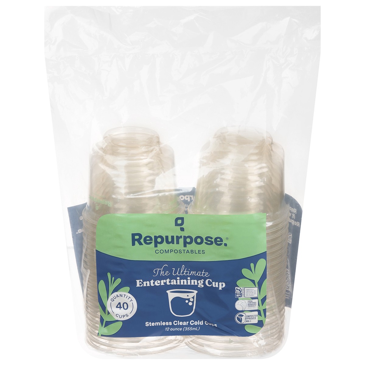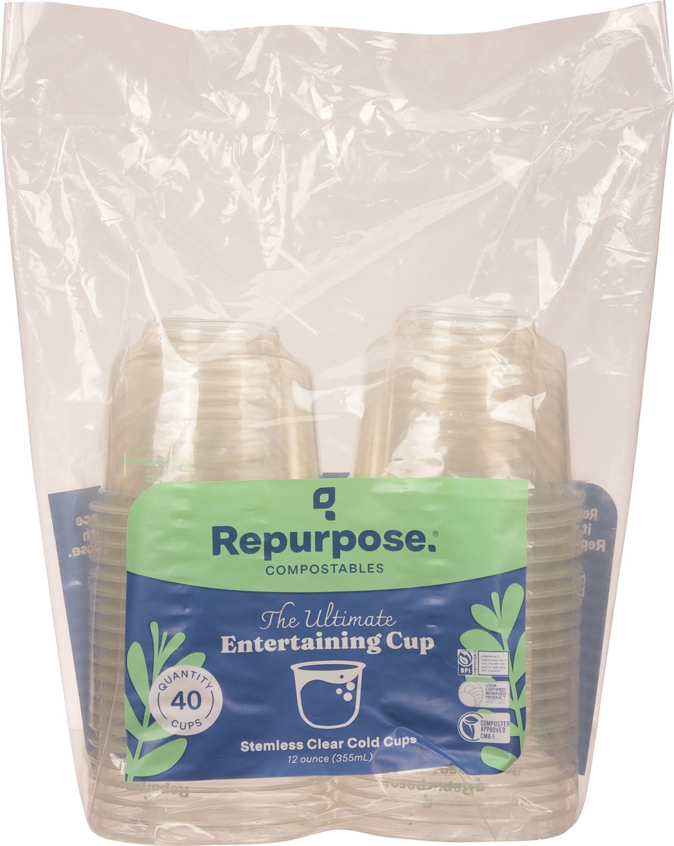 Repurpose Compostables 12 oz Stemless Clear Cold Cups