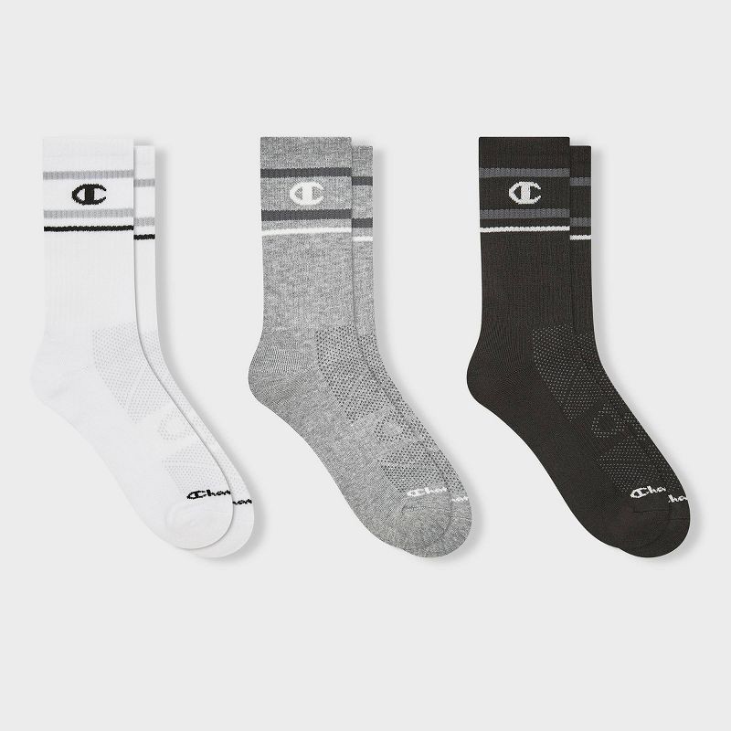Champion All Sport Performance Crew Socks 3pk - Black/Gray/White L