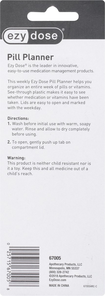 Ezy Dose is the leader in innovative, easy-to-use medication management products. This weekly Ezy Dose Pill Planner helps you organize an entire week of pills or vitamins. See-through plastic makes it…