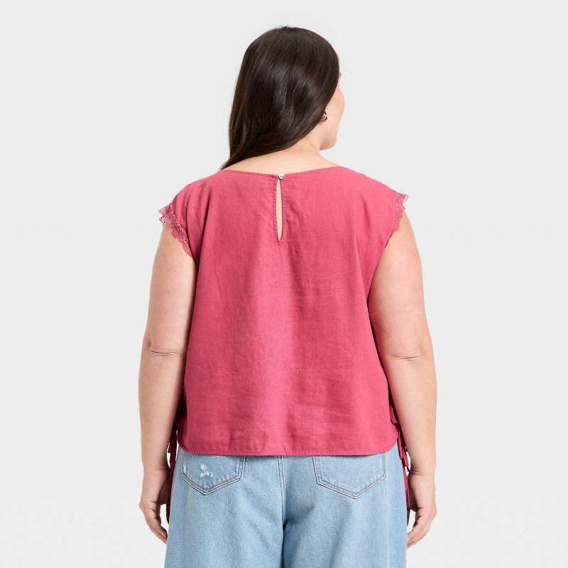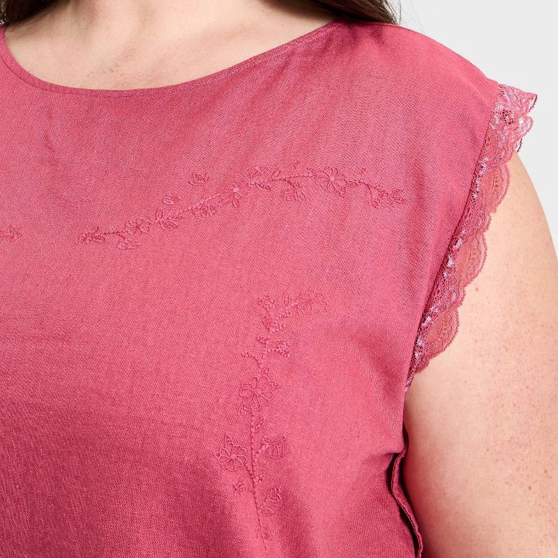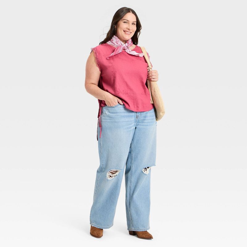 Elevate your everyday wardrobe with this Western Short-Sleeve Embroidered Tie-Top Blouse from Universal Thread™. Made of linen-rayon blend fabric, this sleeveless blouse features a crew neckline with …