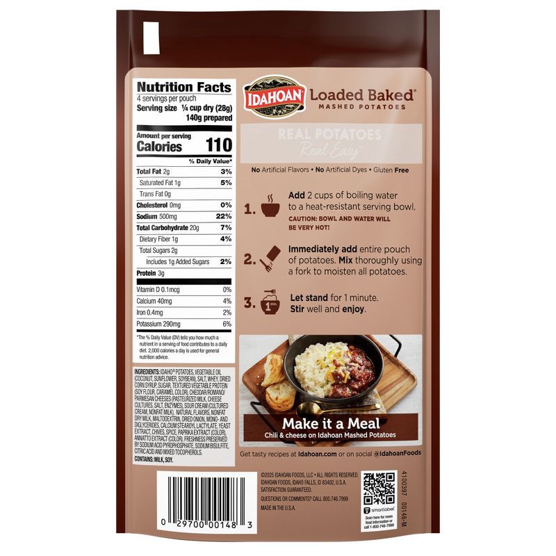 Whip up delicious, rich mashed potatoes in minutes with Idahoan Loaded Baked Mashed Potatoes! Our instant mashed potatoes are always made with 100% Real Idaho potatoes. Perfect for a variety of wholes…