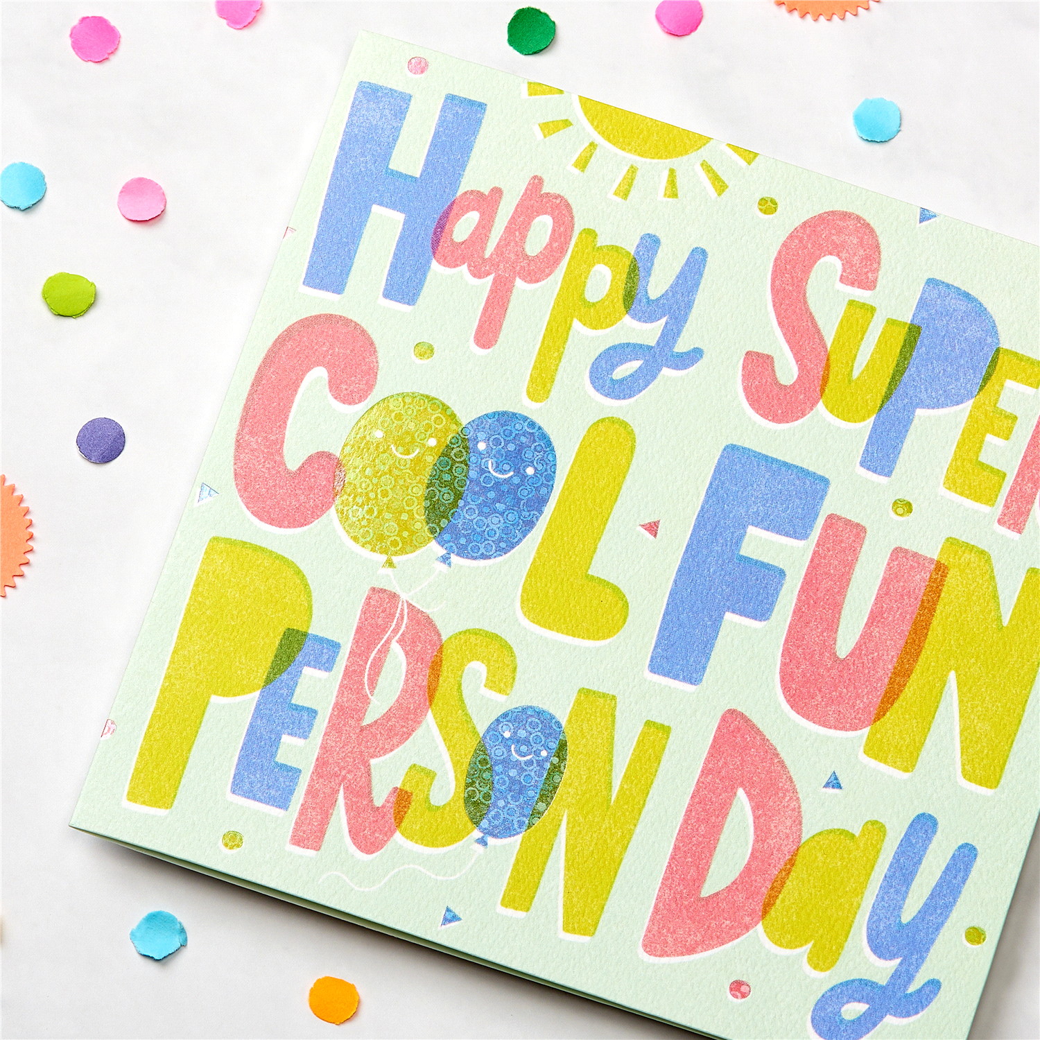 Is there a super cool fun kid in your life? This Present Company card by American Greetings makes it easy to wish them happy birthday. A cute birthday greeting card design features bright balloon lett…