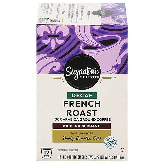 Signature Select Coffee Pods Single Serve Dark Roast French Roast Decaf - 12 Count