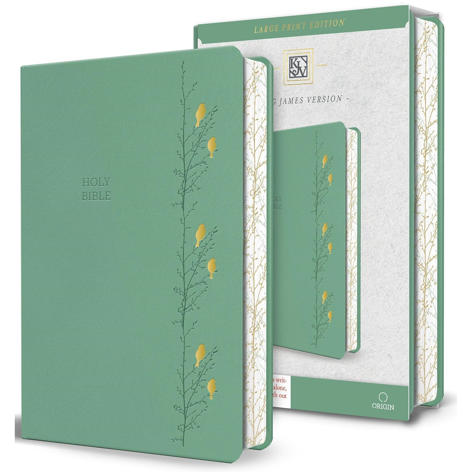Kjv Holy Bible Large Print Medium Format Green With Birds Faux Leather By King James Version