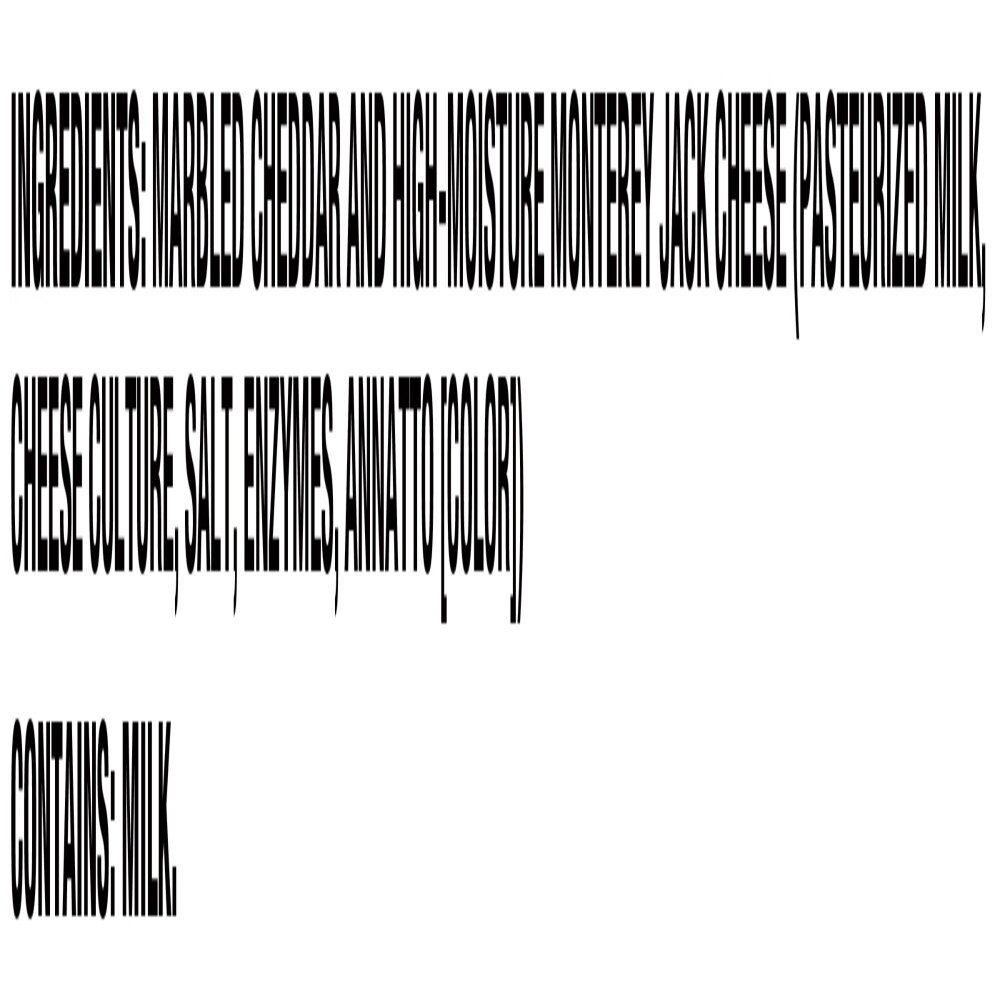 Marbled Cheddar and High-Moisture Monterey Jack Cheese (Pasteurized Milk, Cheese Culture, Salt, Enzymes, Annatto [Color]).