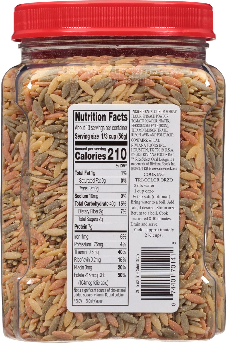 - Unlock layers of culinary creativity with RiceSelect Tri-Color Orzo. Once it’s ready