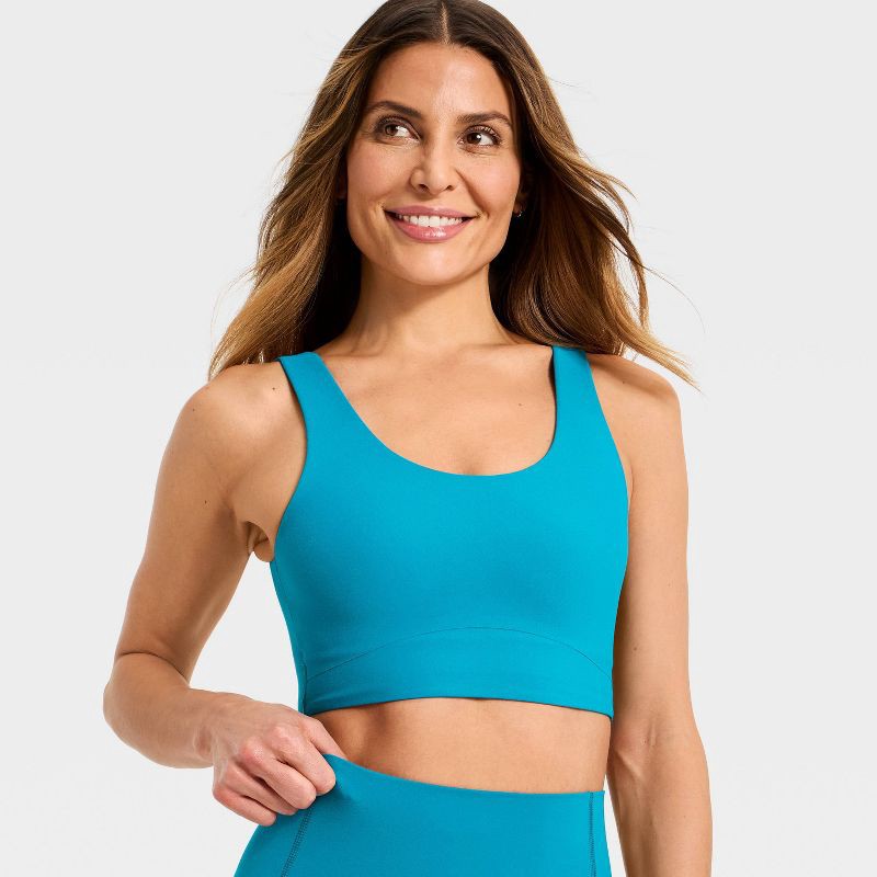 Women's Everyday Soft Medium Support Longline Sports Bra - All In Motion™ Dark Teal Blue L
