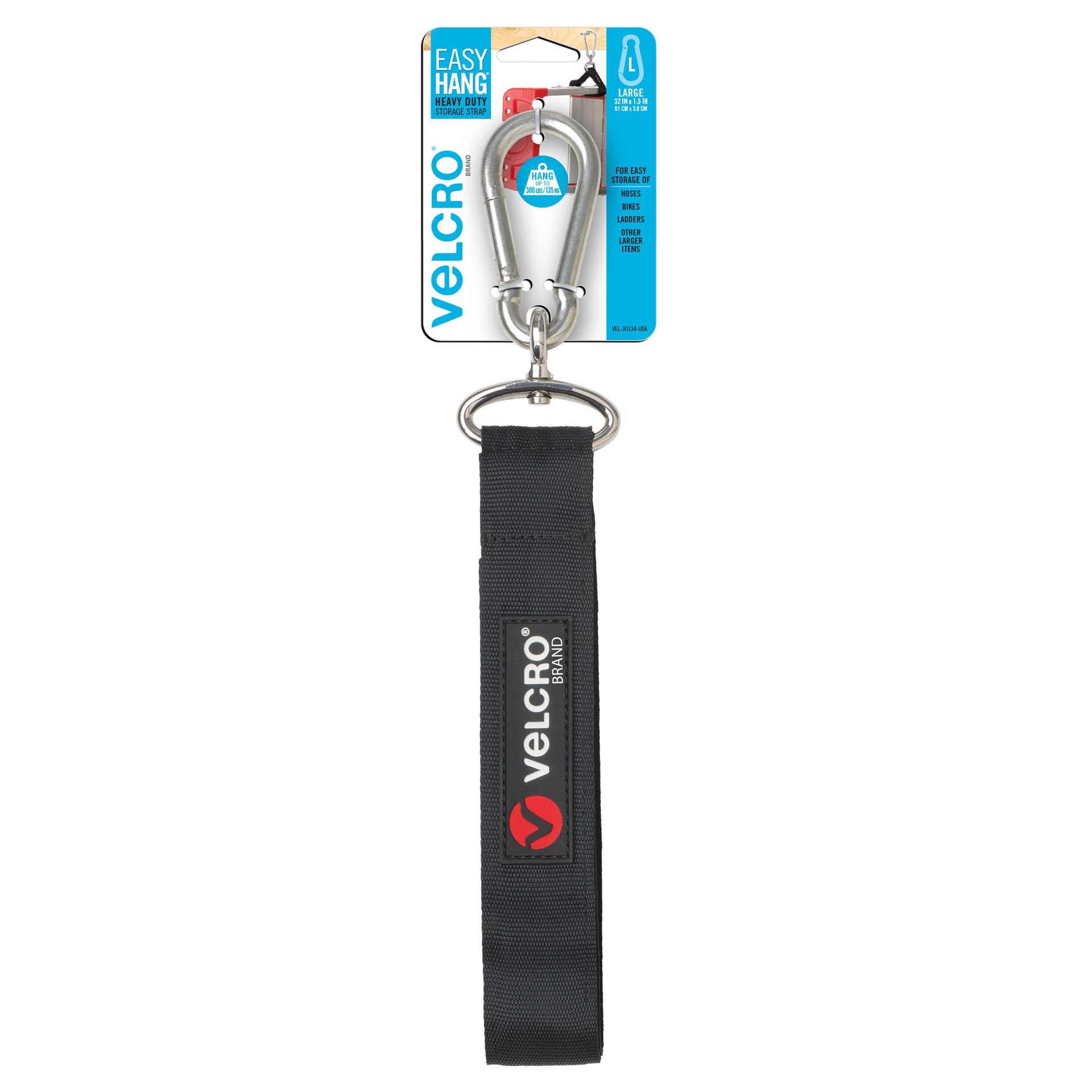 VELCRO Brand VEL-30134-USA Easy Hang Strap | Heavy Duty Outdoor Storage Extension Cords, Cables, Tools, Bikes | Organization for Garden, Shed, RV, Large - up to 300 lbs, Black