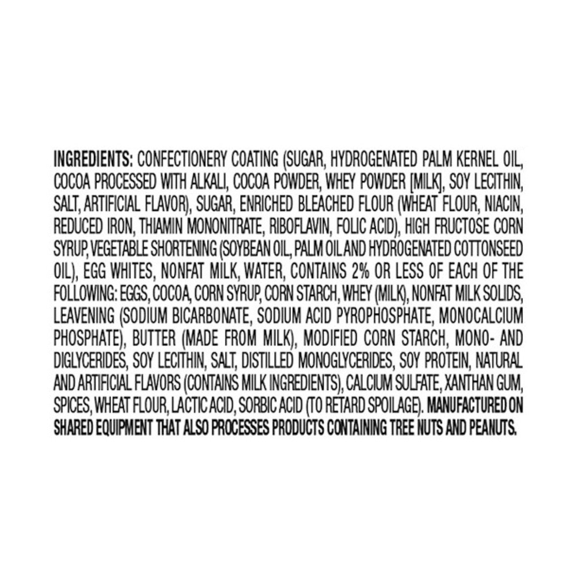 Confectionery Coating (Sugar, Hydrogenated Palm Kernel Oil, Cocoa Processed with Alkali, Cocoa Powder, Whey Powder [Milk], Soy Lecithin, Salt, Artificial Flavor), Sugar, Enriched Bleached Flour (Wheat…