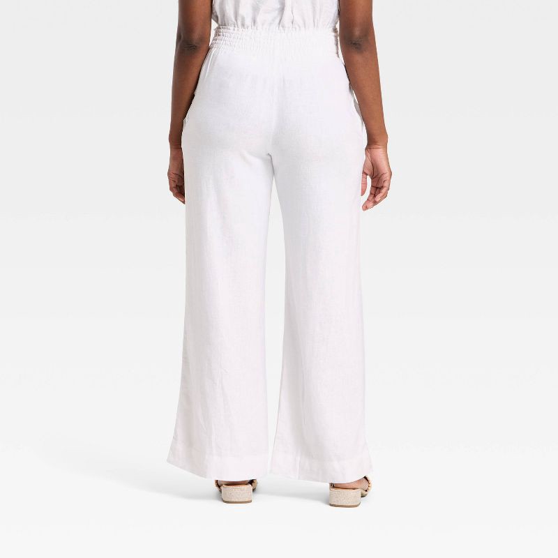 Women's Linen Wide Leg Pull-On Pants - A New Day™ White S