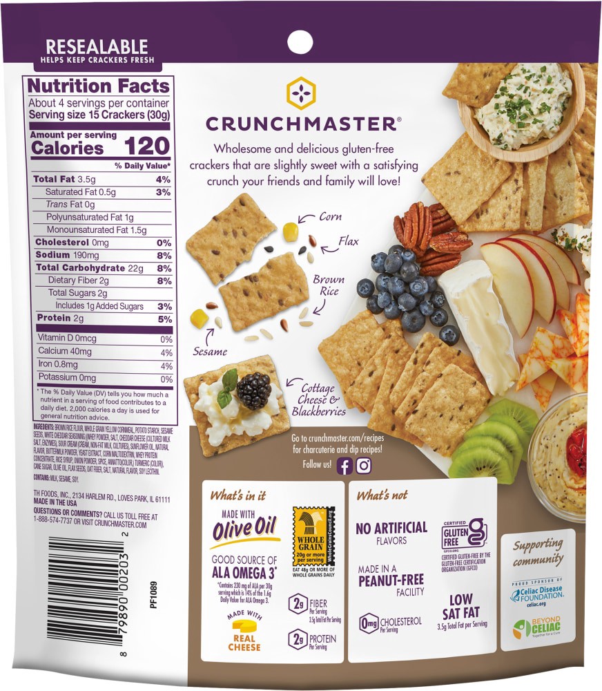 Wholesome and delicious gluten-free crackers that are slightly sweet with a satisfying crunch your friends and family will love! Corn. Flax. Brown rice. Sesame. Cottage cheese & blackberries. Supporti…
