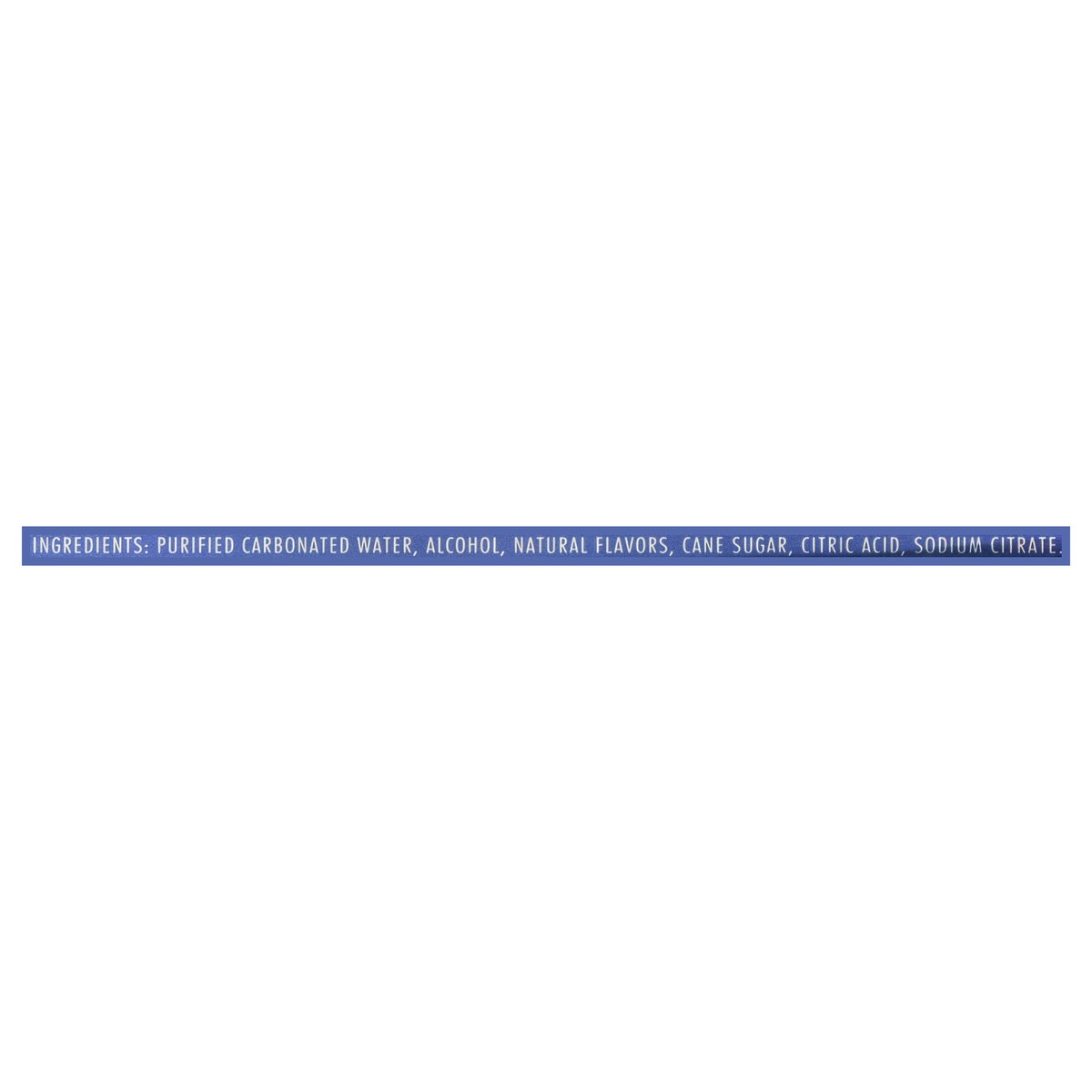 Purified Carbonated Water, Alcohol, Natural Flavors, Cane Sugar, Citric Acid, Sodium Citrate.